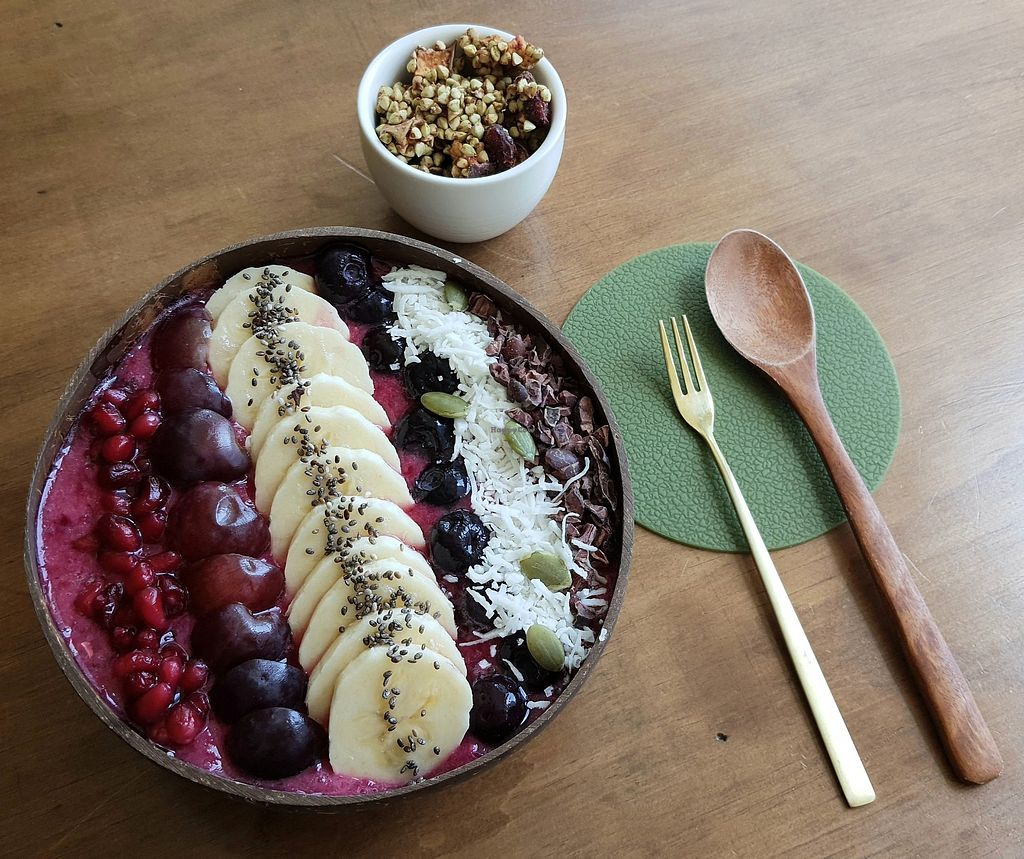 Smoothie bowl served with granola