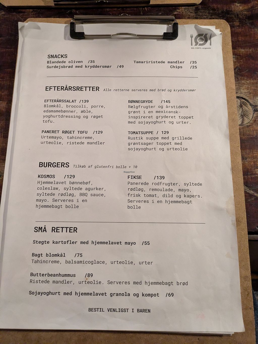 Read moreFelt like the food was made with love. We had the kosmos burger and the efterår salat and enjoyed both.