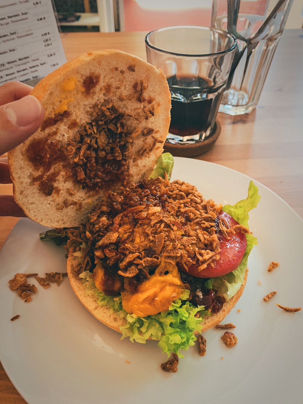 Best cakes ever, also non-vegans loved it! Very friendly owner, we talked a lot. Her husband - who bakes the cakes - is a baker by trade and he always takes a lot of time to find the best recipe. The Burgers were good as well and at the weekend they sell soft ice cream. Totally recommend it!