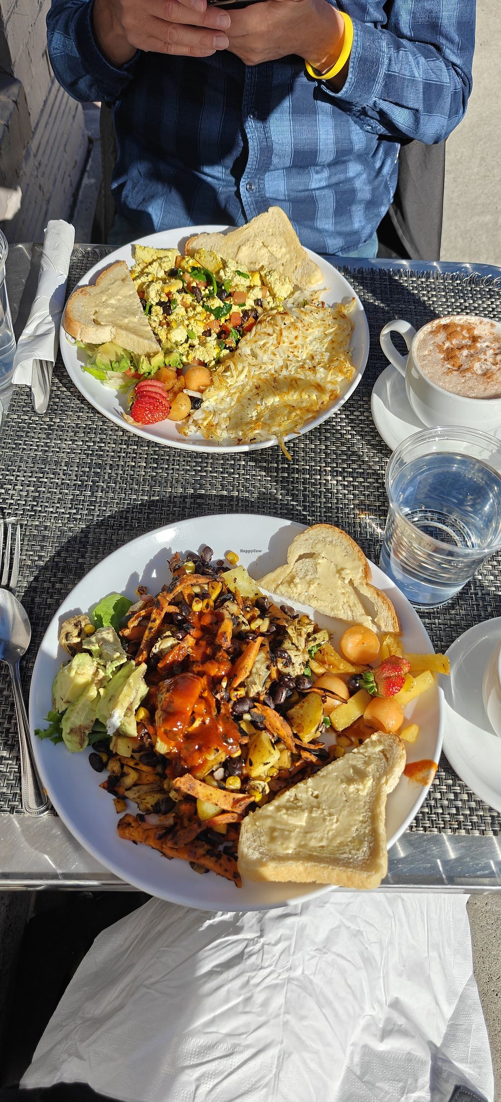 Ate breakfast here. Vegan options and can substitute tofu for eggs on other choices. Vegan butter available for toast also. Almond milk available for coffee. Service was good, outdoor seating was nice. Really appreciated vegan options besides oatmeal.