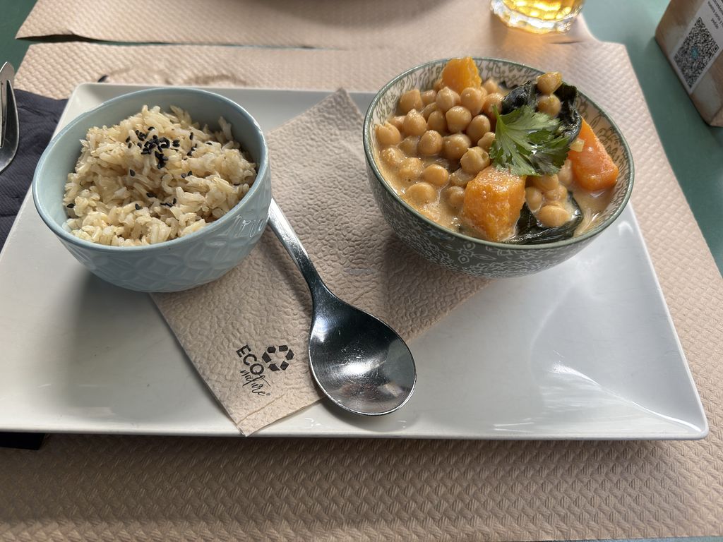 Read moreEn otra ocasión fuimos a comer y destacaría sobre todo el curry con un sabor muy bueno y una cantidad que hizo que tuviese que pedir un tupper para llevar XD. La tortilla de patatas vegana está bastante bien conseguida.