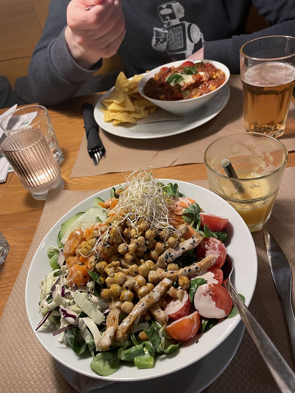 Very cute place with delicous dishes: we had the tortilla con ensalada and the chili sin carne con nachos 😍 I also found the prices very fair :)