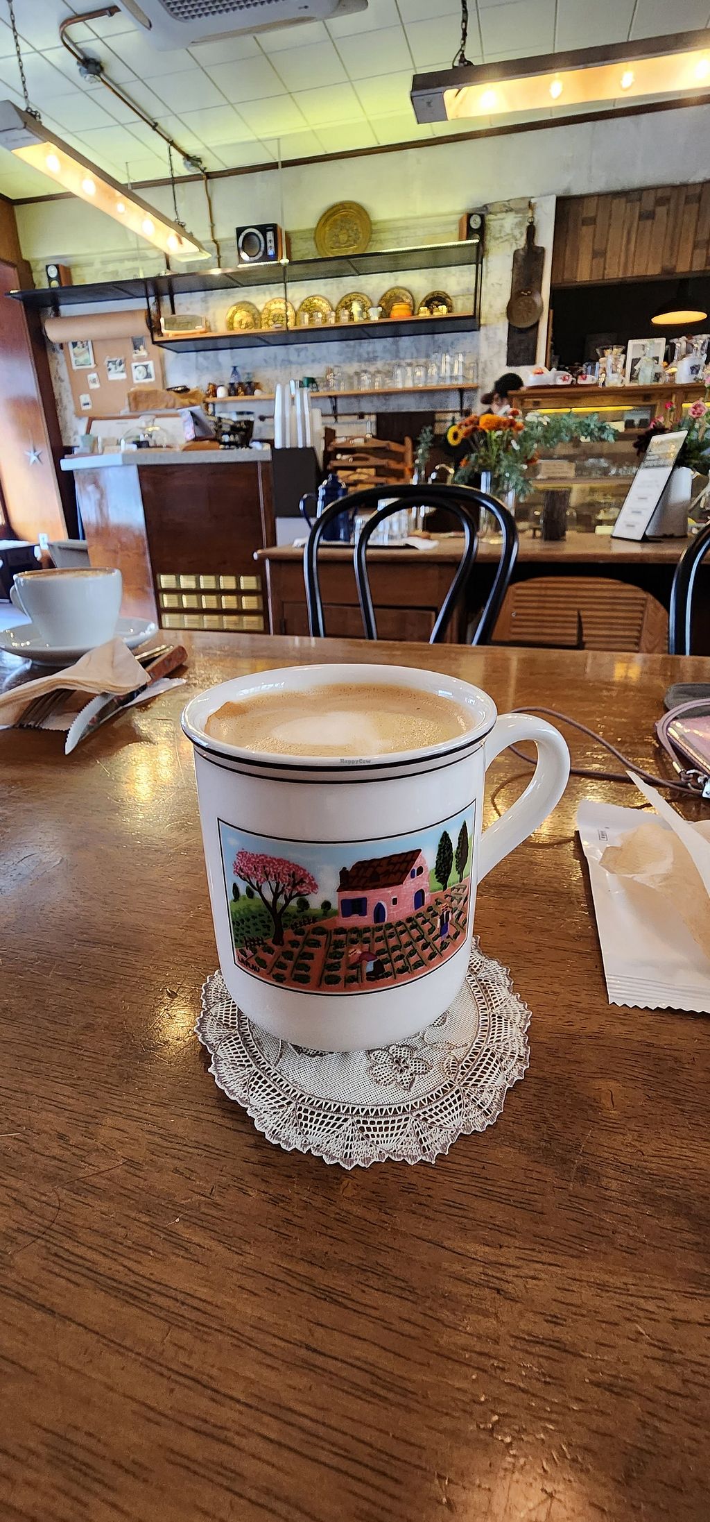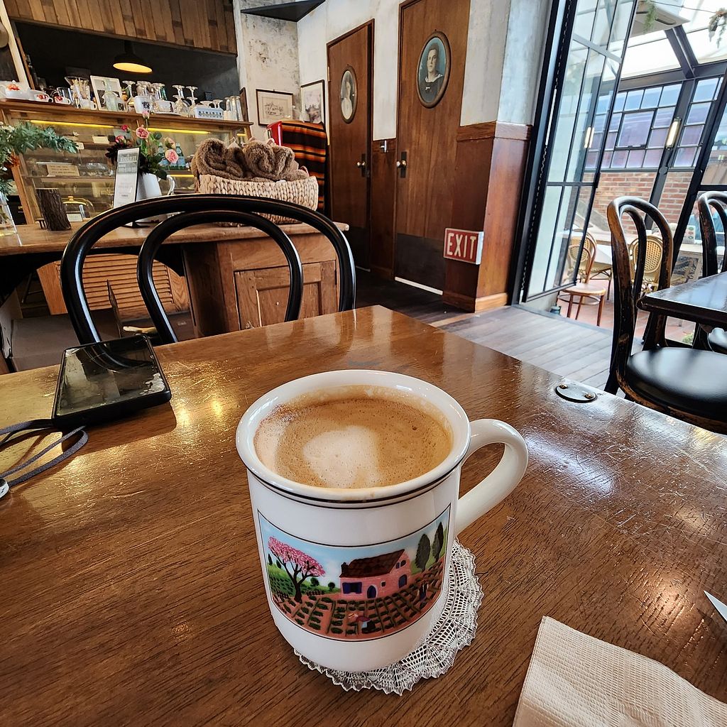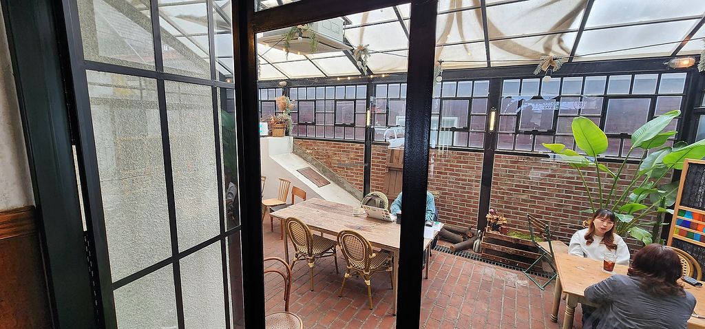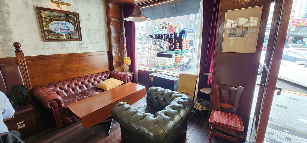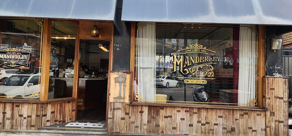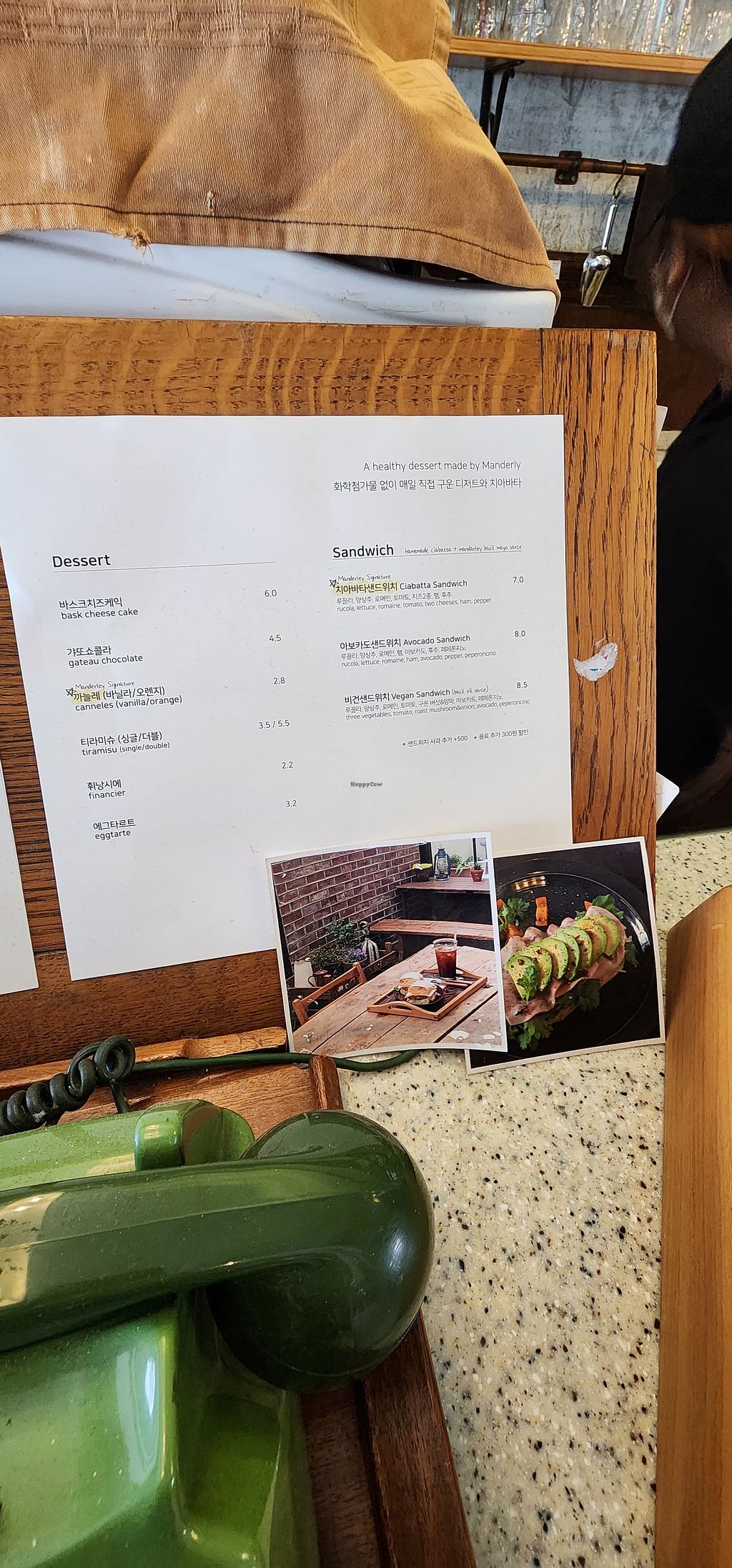 Café Manderley menu – "Vegan 치아바타 샌드위치" (left) is the vegan option.