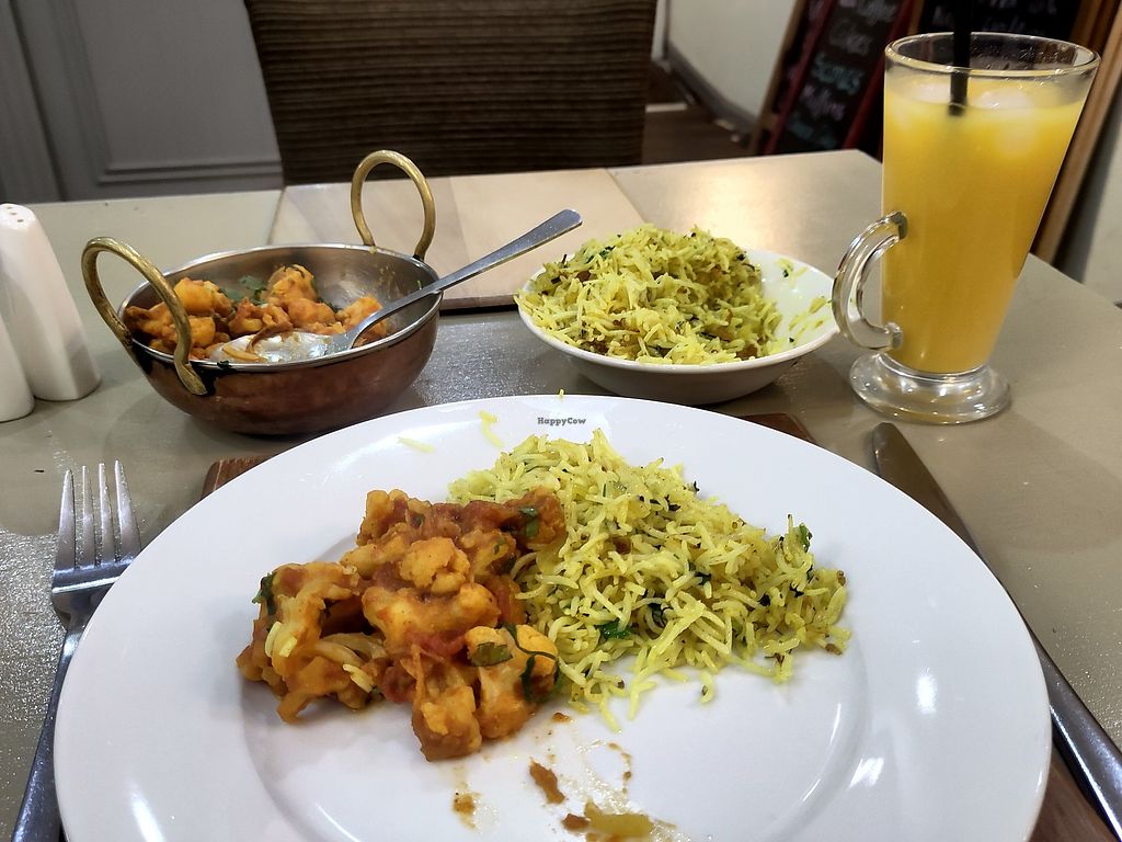 We went to this place as another restaurant we wanted to go to was overcrowded. They had many vegan/ vegetarian options on the menu, and we chose a Dal an a dish with potatoes and spinach.