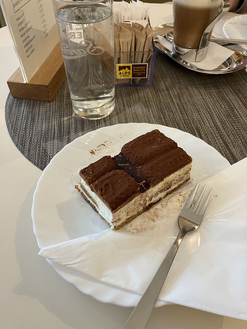 Vegane Sachertorte und Cappuccino mit Sojamilch