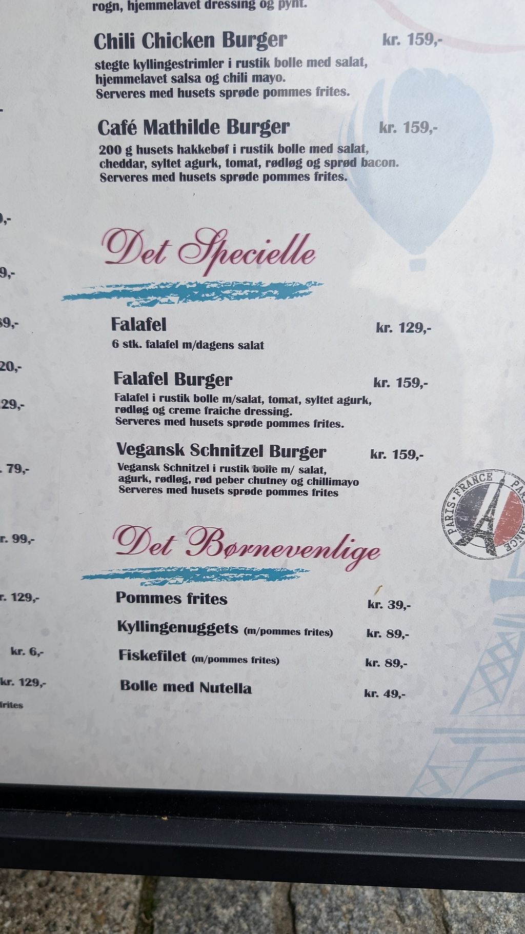 Lacto Ovo Beer/Wine Take-out European Honey Non-veg Serves meat, vegan options available. Restaurant offering a small vegan selection including a vegan schnitzel burger, French fries and falafel. Open Mon-Sun 09:00-21:00. More