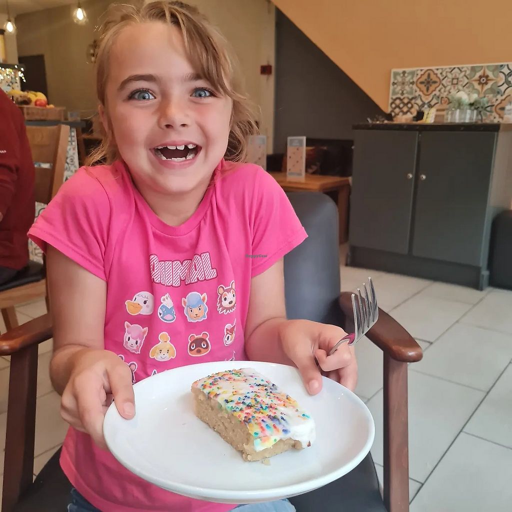 Full row of fresh vegan cakes including Battenberg cake! There were al…