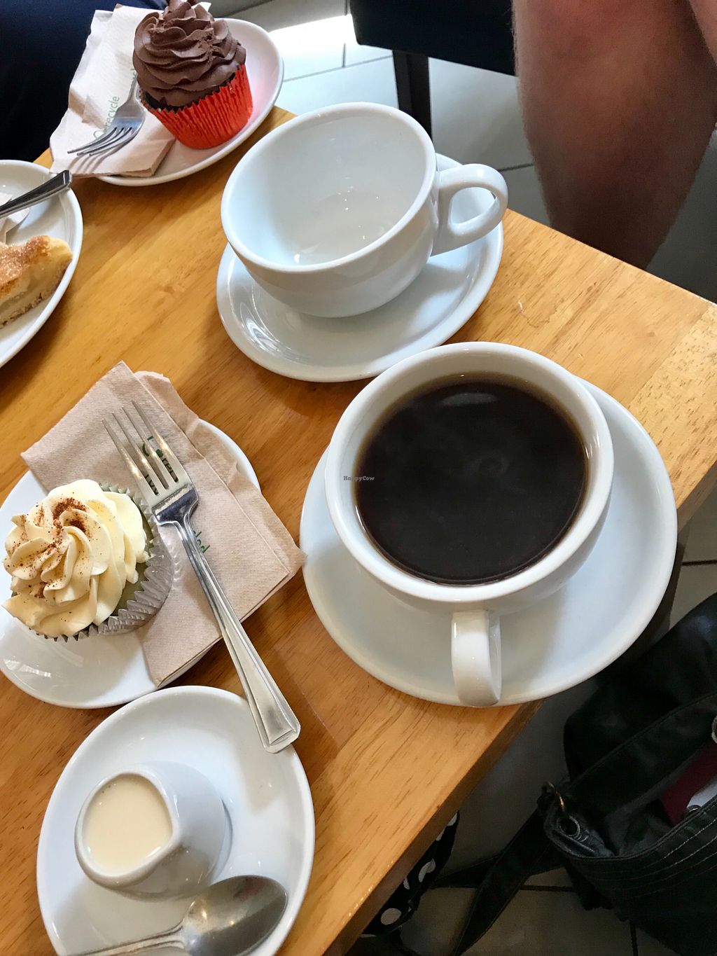 Americano with oat milk, vegan chai cupcake plus a vegan chocolate cup…