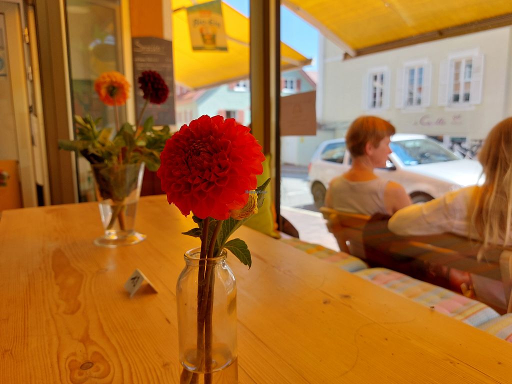 Cafe Miteinander ("Together") opened earlier this year in Murnau, just off the main tourist/shopping street. We had a full lunch there, which consisted of a thai-inspired potato and cauliflower dish, and a cake afterwards. The owner was very friendly, the place is a nice spot also to sit outside. The food had a home-made appearance, and the "Thai-inspired" was somewhat difficult to detect - basically, it was just potatoes with cauliflower and a fairly nondescript white sauce which might have had hints of coconut and ginger. The cakes were also fine, but again, this is not fine dining. In particular when it comes to the main dish, the flavours were extremely mild - maybe appropriate for a town that does not exactly draw the most adventurous of tourists. For what it offers, it is on the expensive side. Anyway, it is the only vegetarian/vegan place within 20 kms, so go if you are there.
