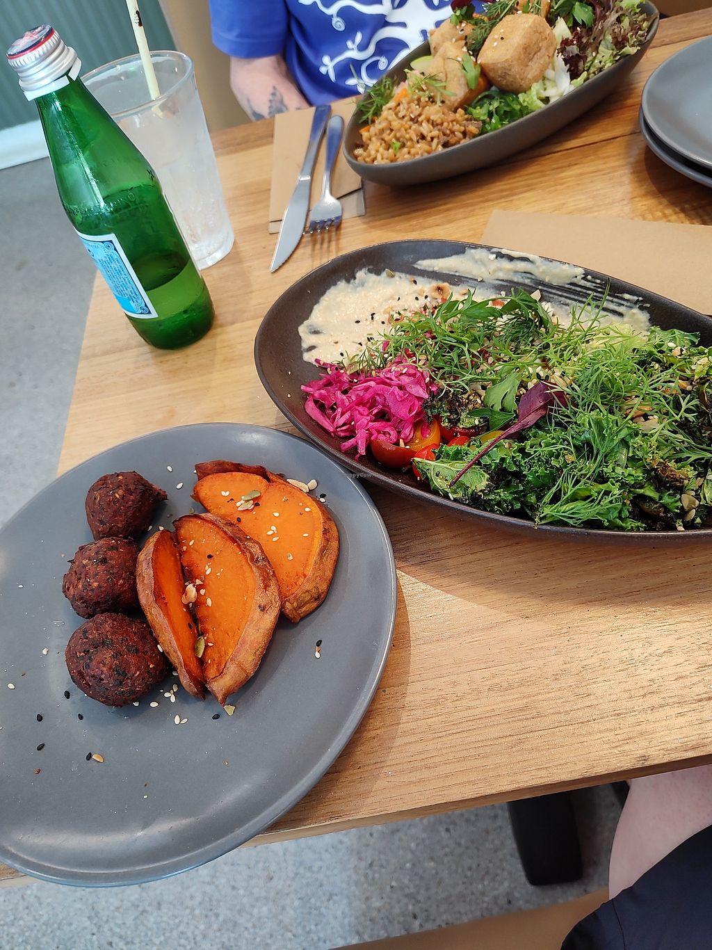 Vegan sweet potato flatbread with falafel