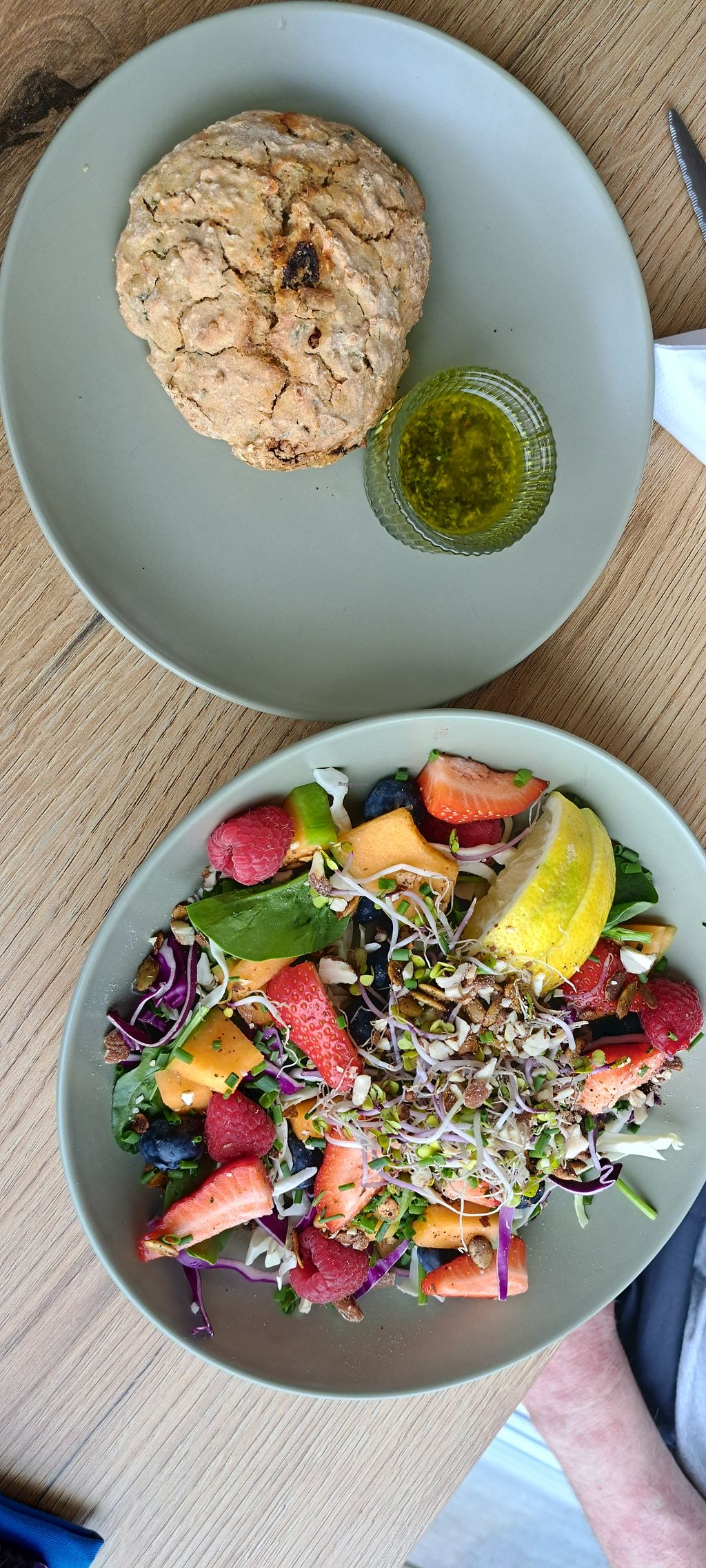 Beautiful, colourful and tasty salad. The bread roll was warm and very…
