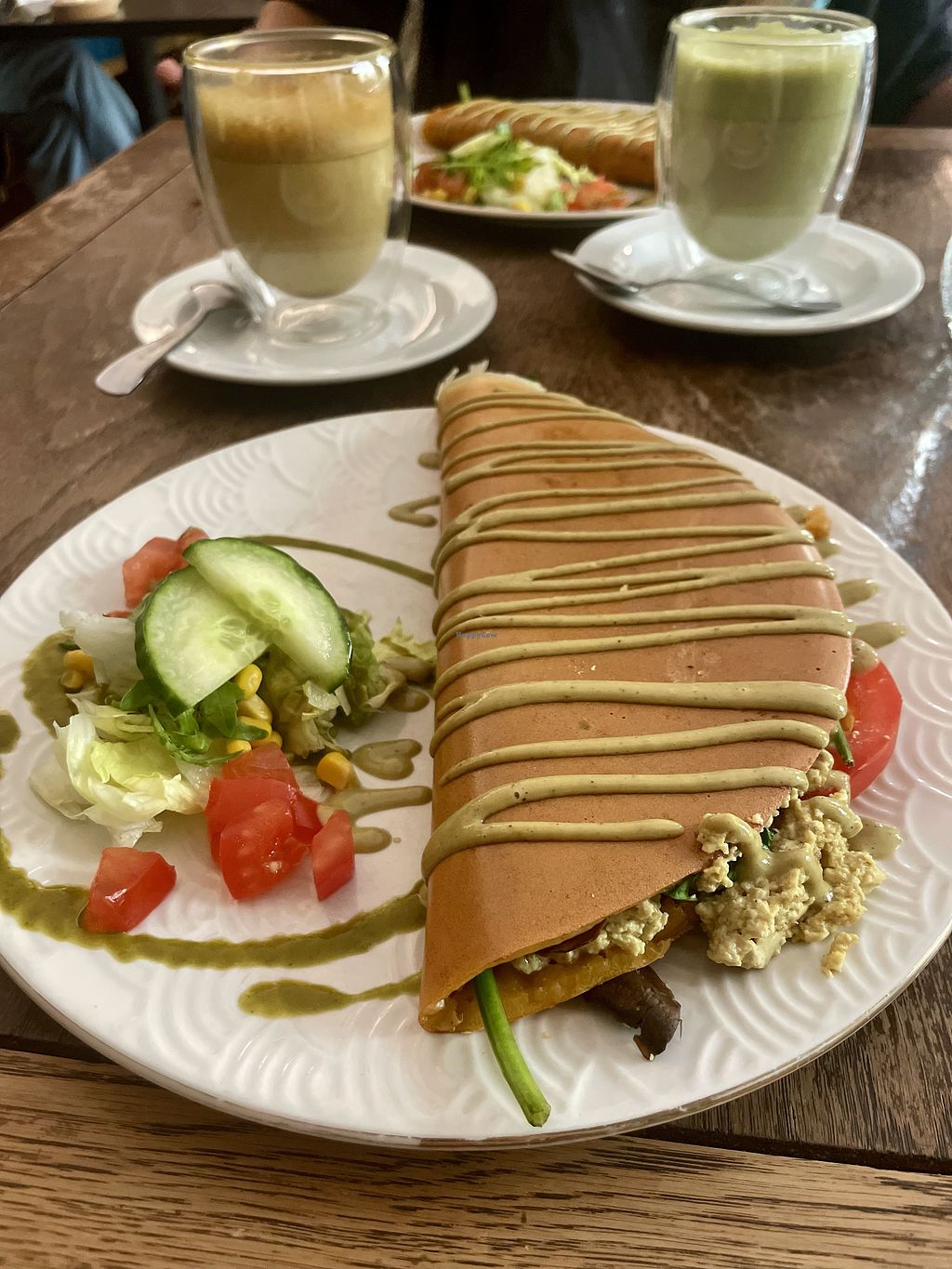 Wir hatten den Scrambled Tofu und den Frühstücksburrito. Beides war geschmacklich super😄