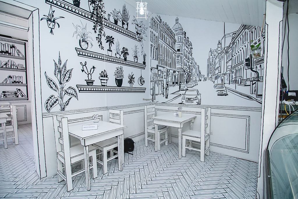 Nice atmosphere and cool decorations. The breakfast and juices are very good. Service is great too.