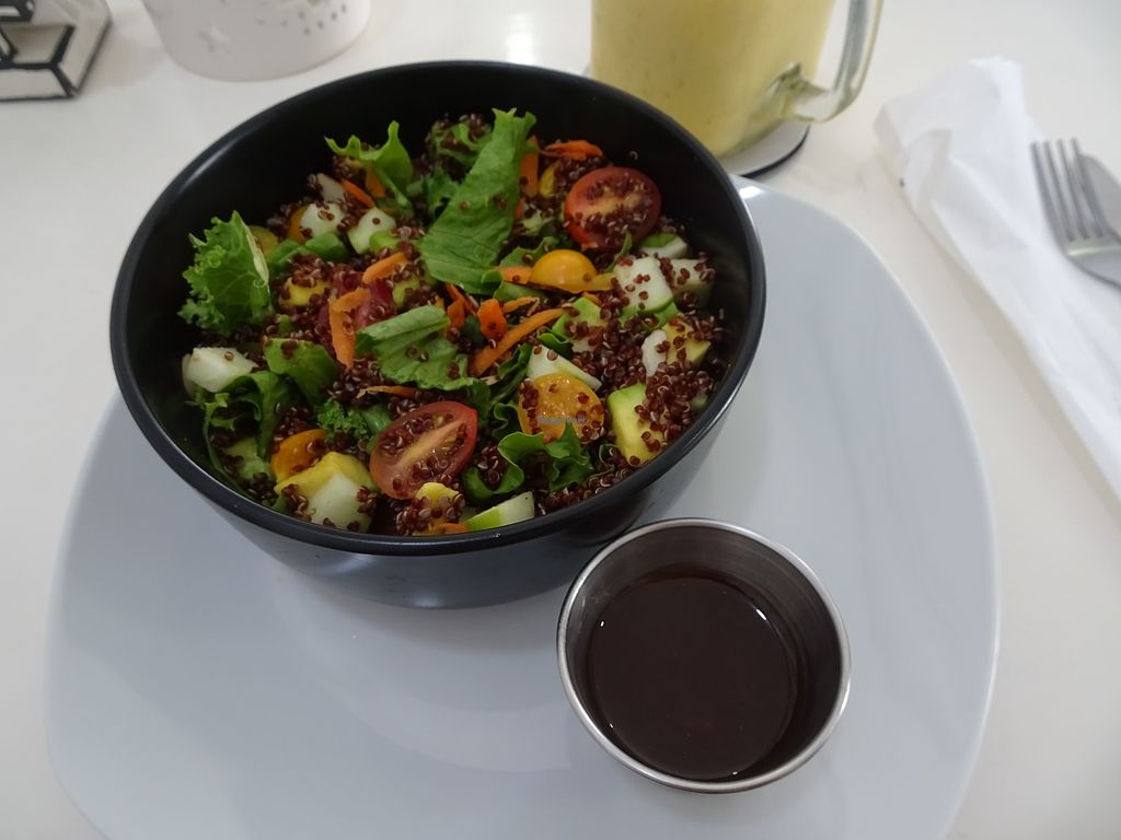Lovely café in the centre of Liberia. They serve delicious salads and the smoothies can be made with plant milk.