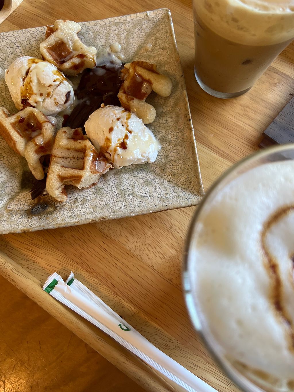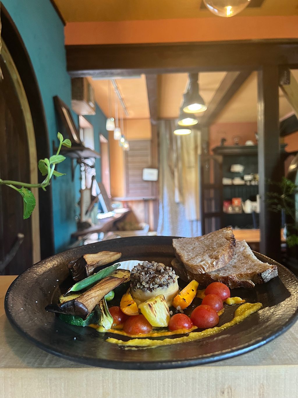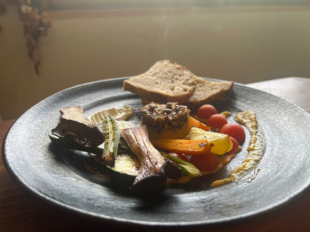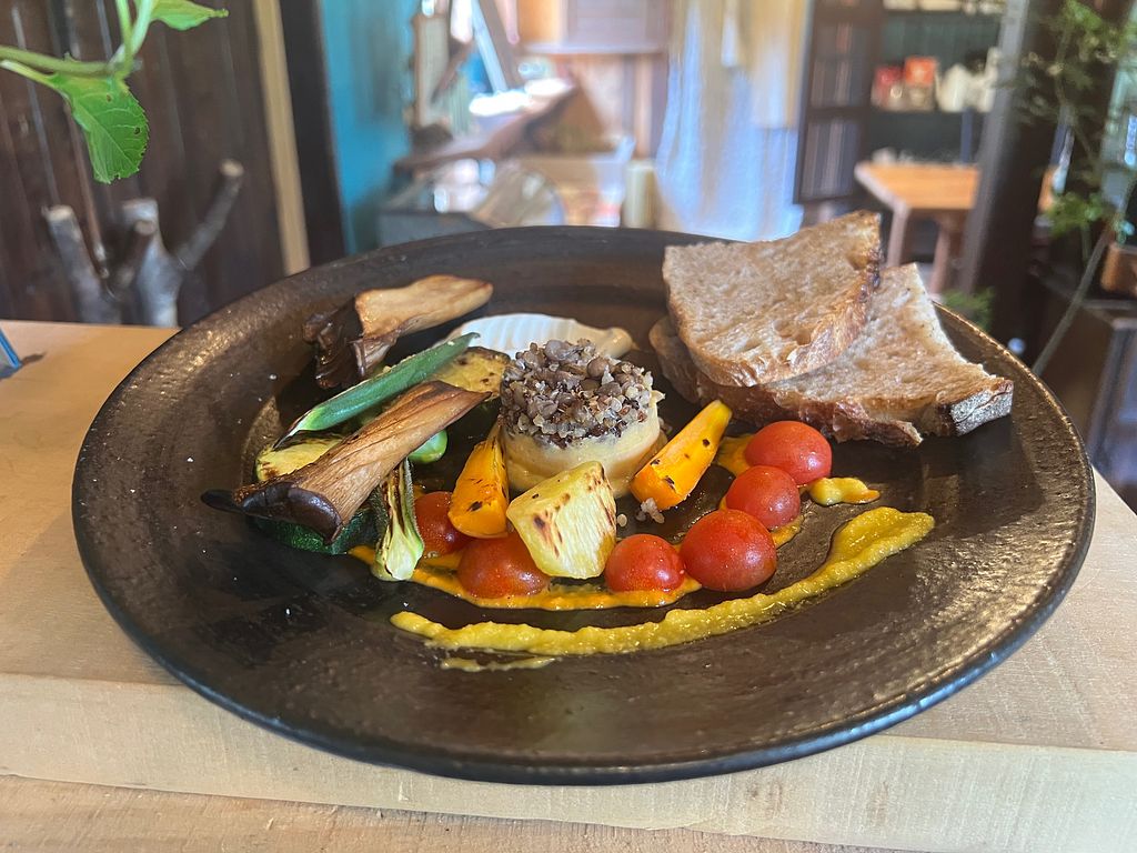 The owners are friendly. The vegetables were organic and very tasty. And the vegan cafe au lait I ordered after the meal was delicious.