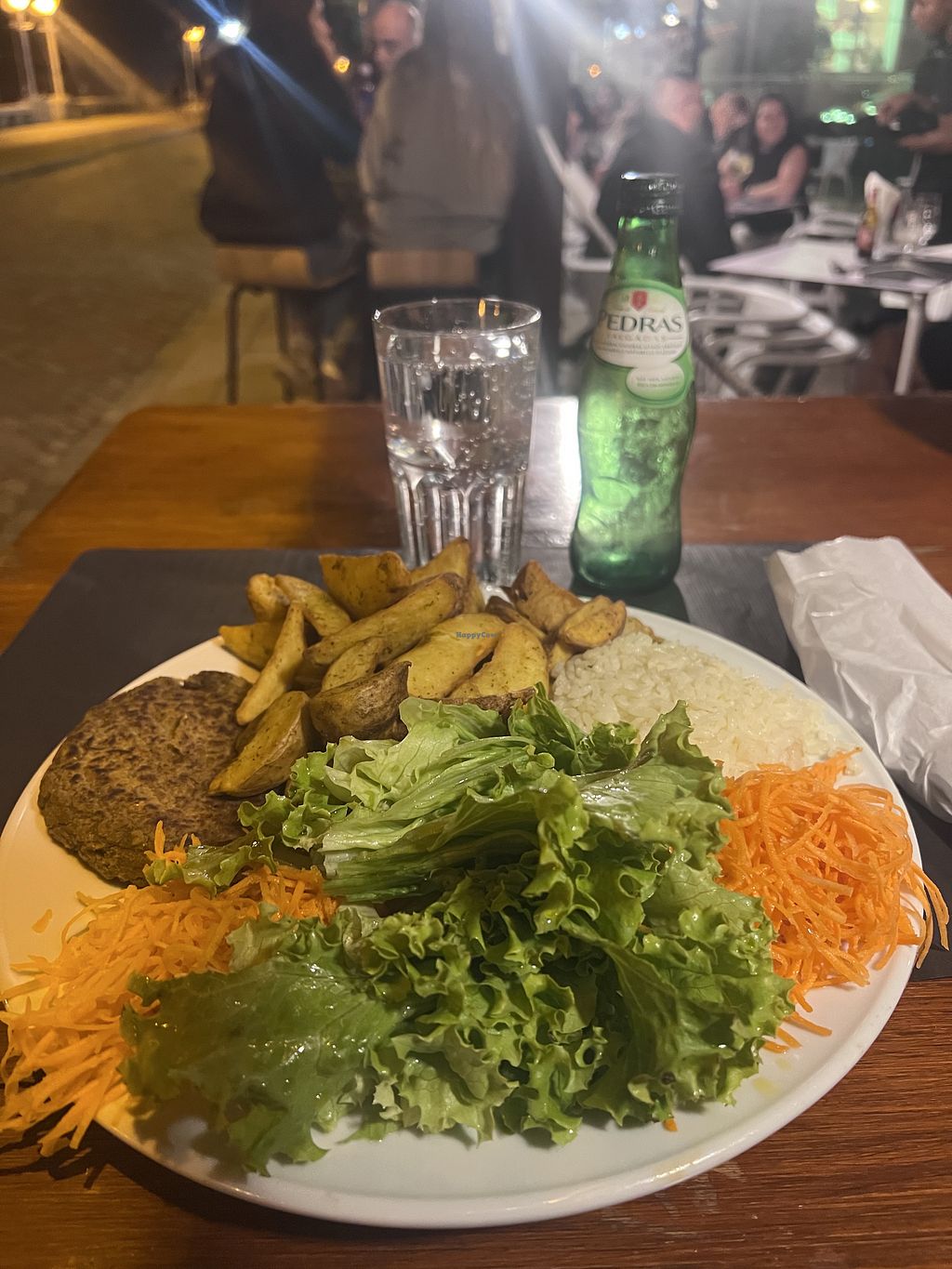 Ended up here for dinner just because other places with more vegan options were closed. They have a couple of vegan burgers, the one i had was very average, dry and flavourless. Prices are very fair though, and the service is decent. Outdoor seating is available. I'm sure there are better places for vegans in Vila Praia de Ancora.
