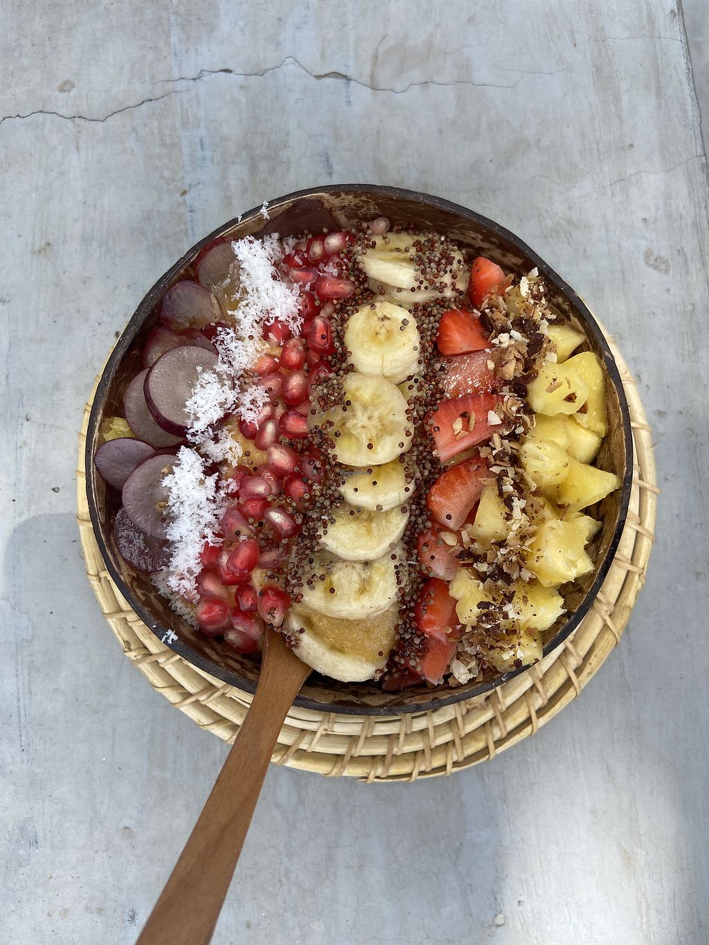 It’s a really nice cafè on the the beach. You can have a nice smoothie bowl or anjoy an iced americano with coconut milk. They also have two Vegan sushi options.