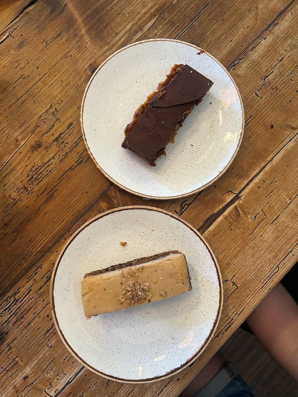 A lovely little place, it could be 4 stars but we didn't get to try to food so holds potential for good vegan food. We only stopped for cake and coffee; we tried a slice of coffee and walnut cake and a gizzilionaire slice, plus some vegan smoothies made with coconut milk. The gizzilionaire slice was very nice and the cake had a lot of walnuts, if a bit dry. But we noticed many vegan options, including a vegan moving mountains burger, cheese and chutney sandwich, multiple toasties, sweet potato and lentil or a harissa aubergine and chickpea salad. But additionally several vegan specials including multiple soups; a summer salad bowl with a green tahini dressing and a choice of pea and lemon fritters, fennel and radish salad or harissa and maple carrots; and a miso aubergine burger.