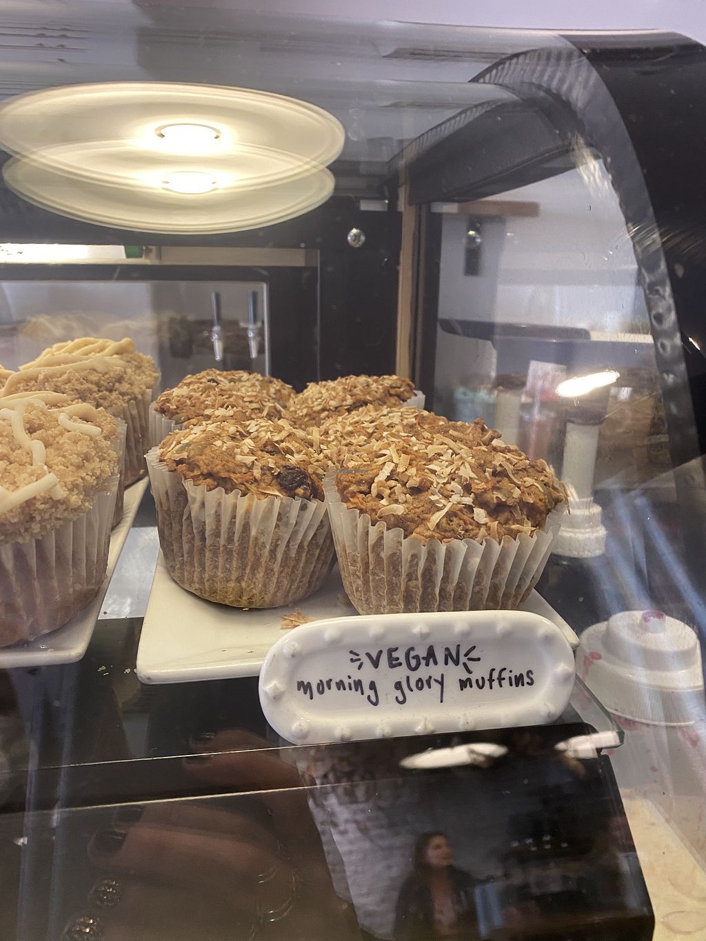 Menu has a Vegan power bowl, vegan salads, and there are vegan muffins, plus almond and oat milk available.