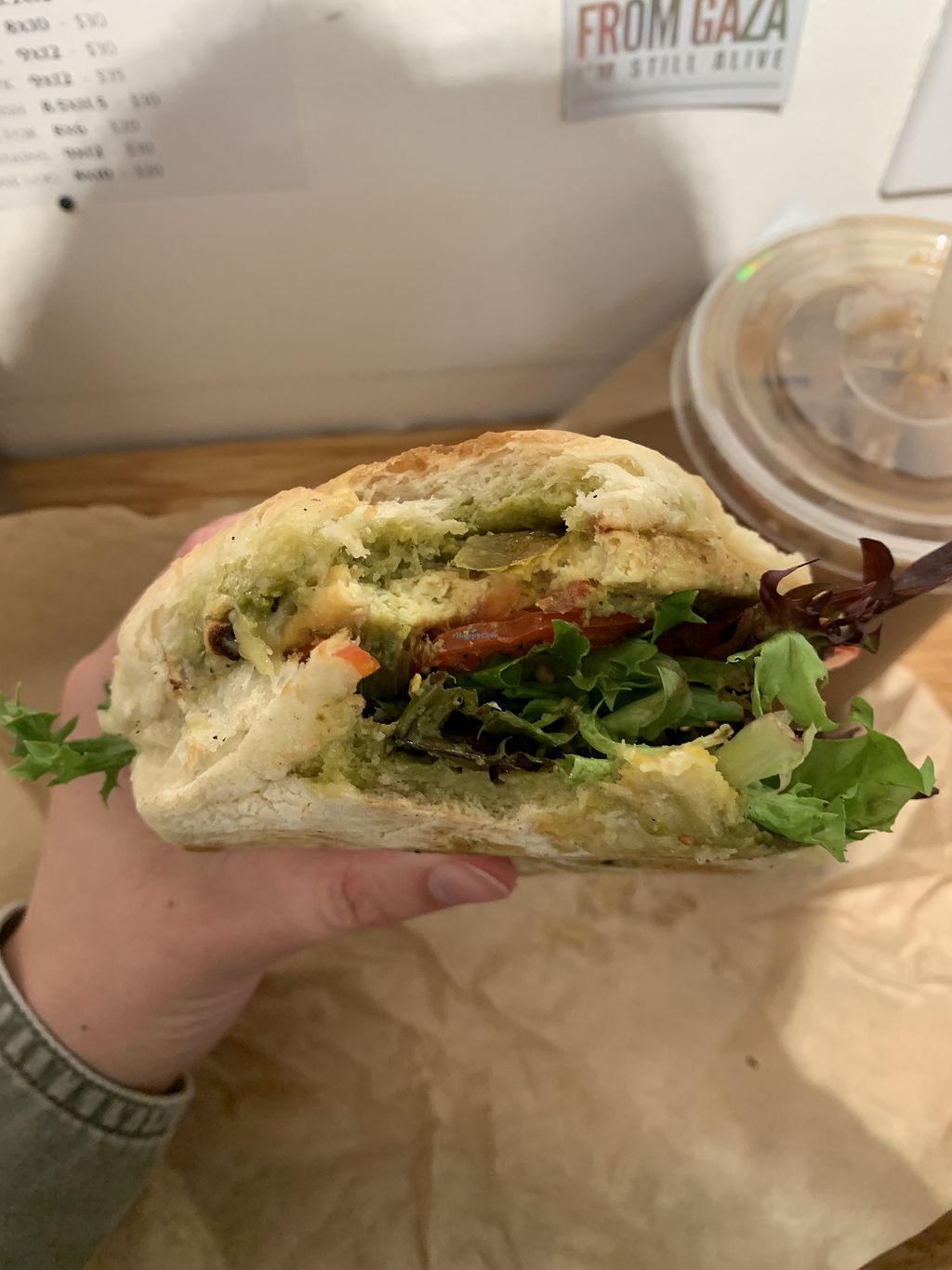 Delicious food and coffee. I really enjoyed their oat milk mocha. The pesto sandwich is very flavorful too! I also really appreciate the pro-Palestine support because human rights are just as important animal rights.