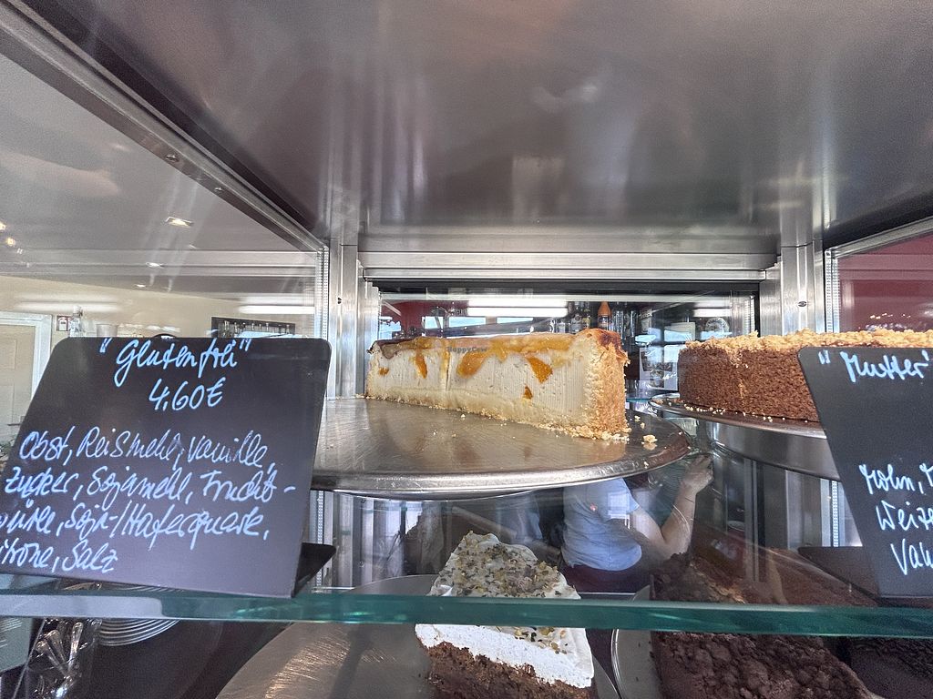 In unserem Urlaub waren wir gleich zweimal dort. (Kuchen gibt es auch zum mitnehmen) Besonders der Käsekuchen war sehr lecker. Kaffee gibt es auch mit Pflanzenmilch.