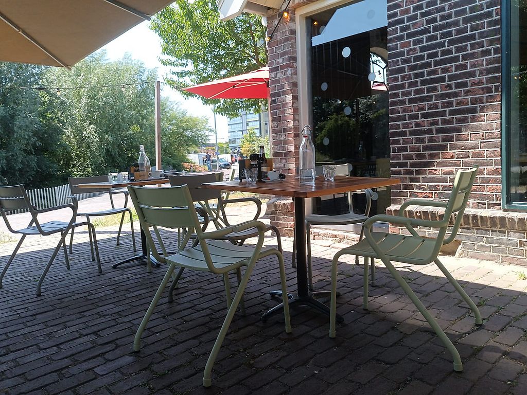 Serves meat, vegan options available. Cafe restaurant serving Dutch food with vegan choices such as broad beans hummus with rocket and radish, mushroom croquettes with bread, salad with spinach, black lentils, cucumber, capers, walnut crumble, and mustard dressing, spring rolls, and cauliflower risotto with capers, hazelnut crumble, celeriac gravy, and watercress. Open Mon-Sun 09:00-01:00.