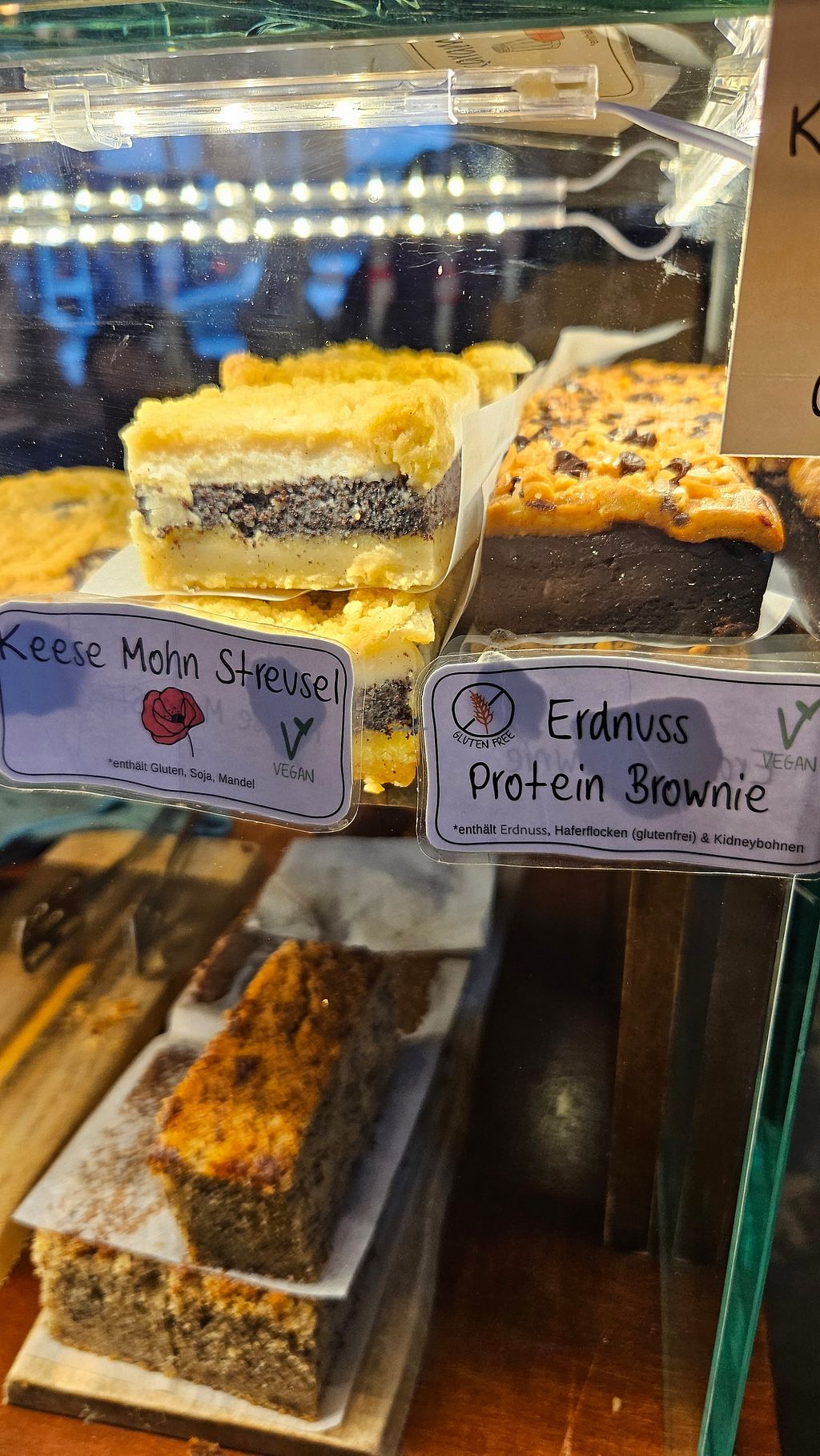 Big selection of vegan cakes and tortes, as well as savoury stuff like quiches, all of which are really good. (Some of the pastries are a bit too sweet, though.) Will certainly go there again when in Cologne.