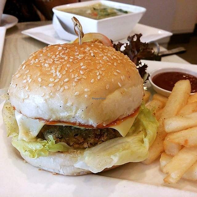 The Soy Burger with Salad and Fries which we had, is imbued with some Indian spices or taste. It is rather interesting.