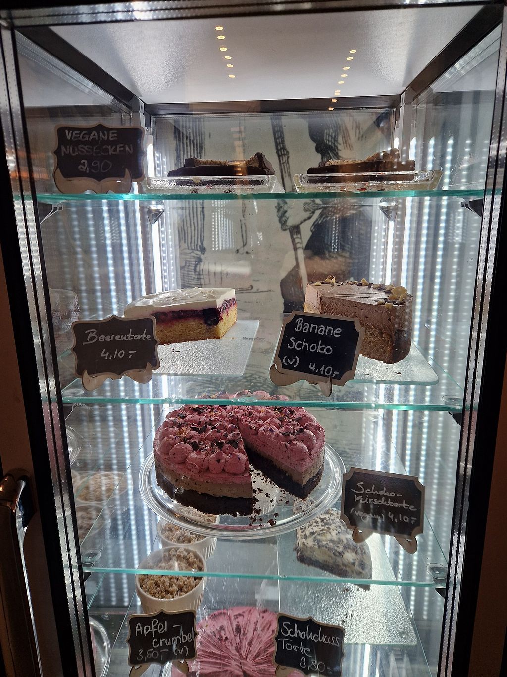 Wir haben uns besonders über die vielfältige vegane Auswahl gefreut. Sowohl der Latte Macciato mit Hafermilch als auch die getestete vegane Nussecke und die vegane Kirsch-Schokotorte waren sehr lecker. Außerdem gibt es eine große Teeauswahl.