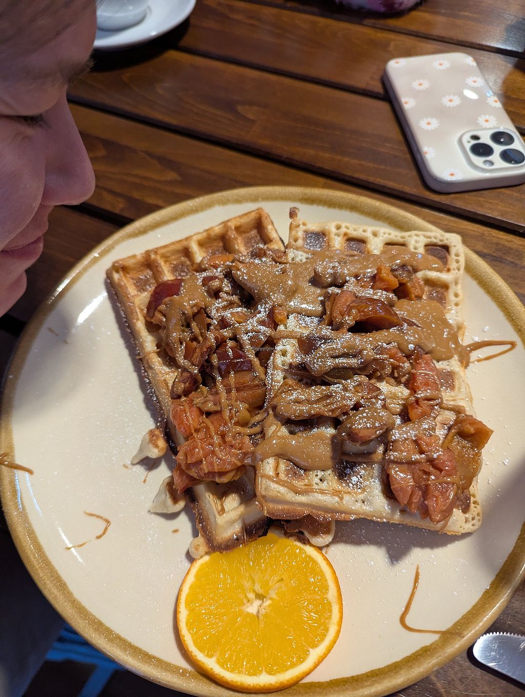 So many options, they offer croissants, the waffles are vegan, they had 3 kinds of pie/cake. There was also plant-based milk. And a lot more (see pictures) :)