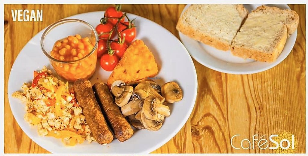 Medium Vegan breakfast, with vegan sausage and scrambled Tofu