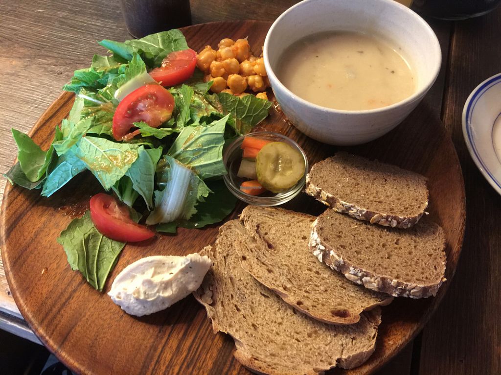 천연효모빵과 현미야채스프 플레이트 bread, chickpea salad, veggie stew, tofu spread (VG…