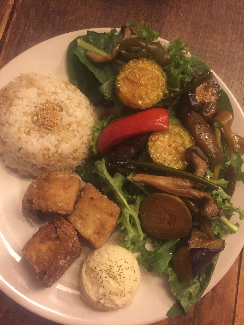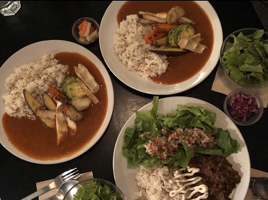 Radish soup, brown rice & pickles, veggie croquette with tomato spicy …