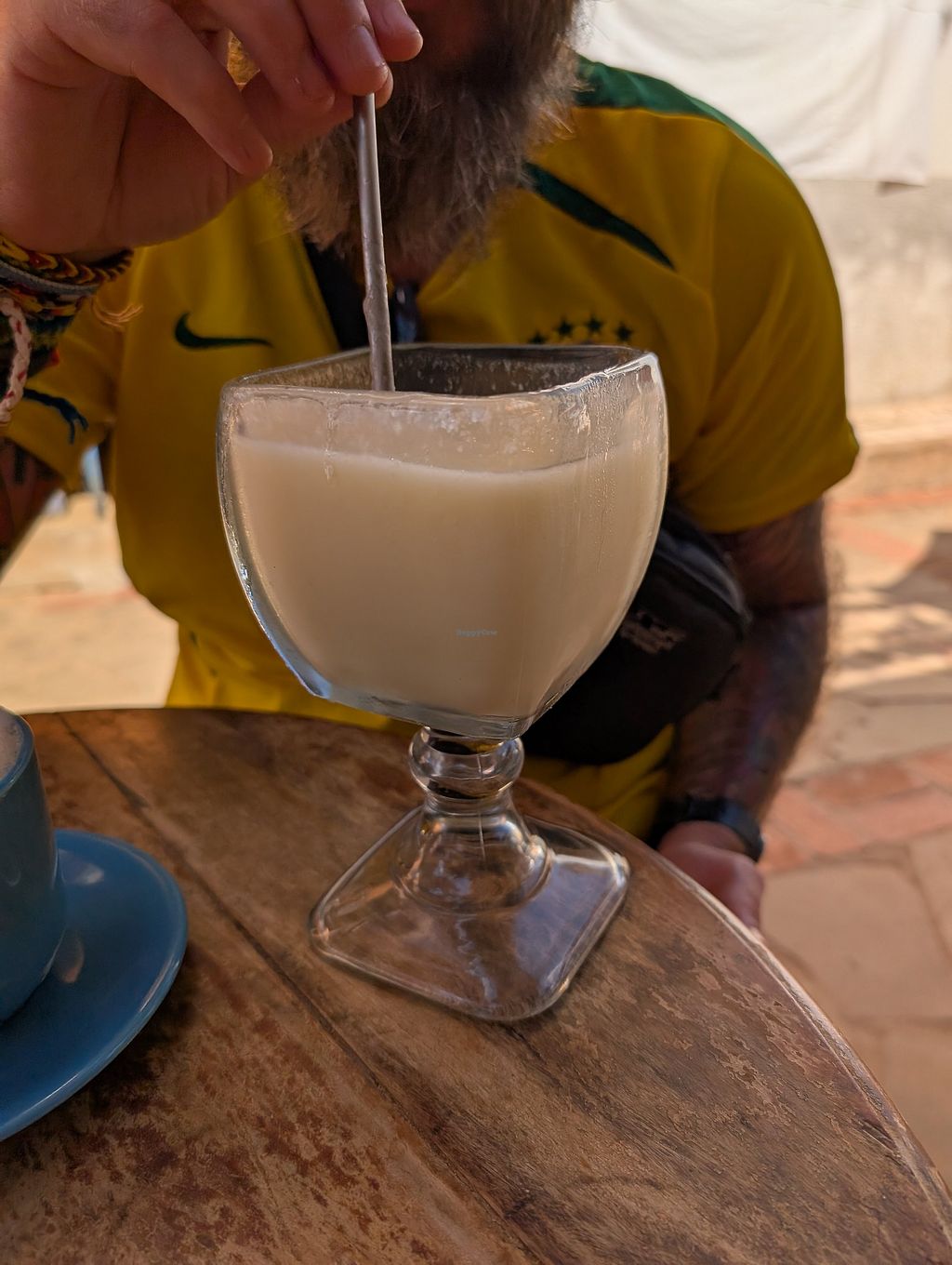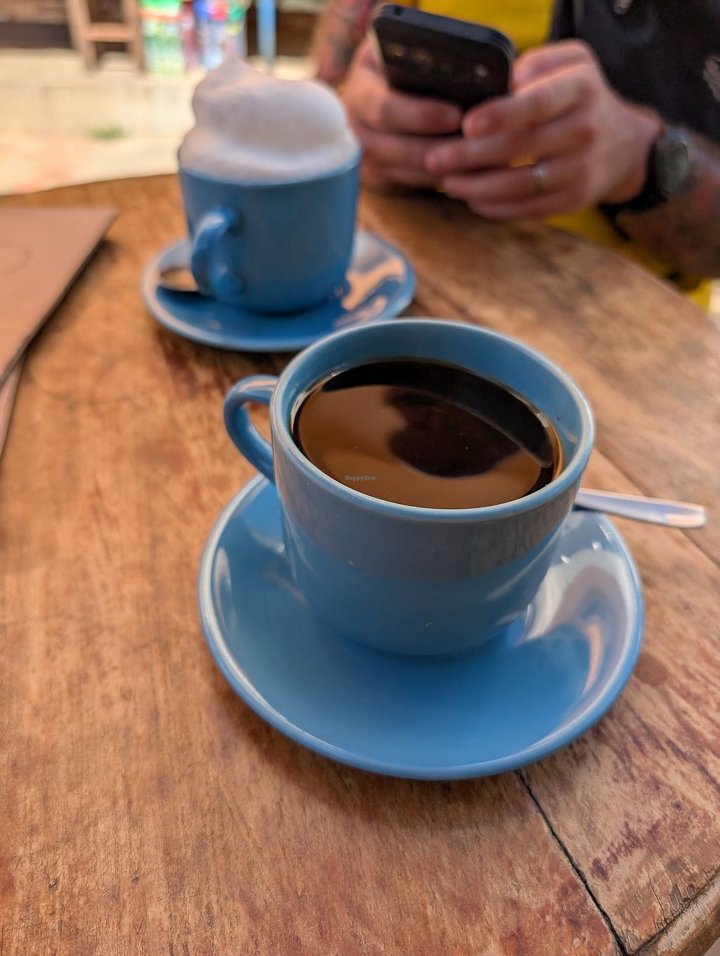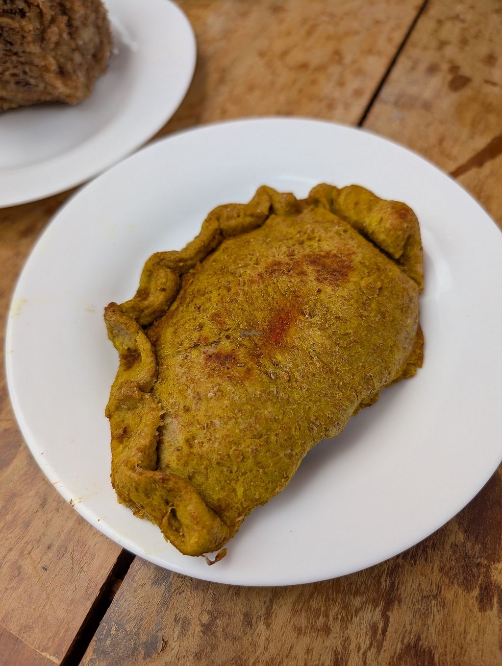 Vegetable empanada and plant based milk coffee