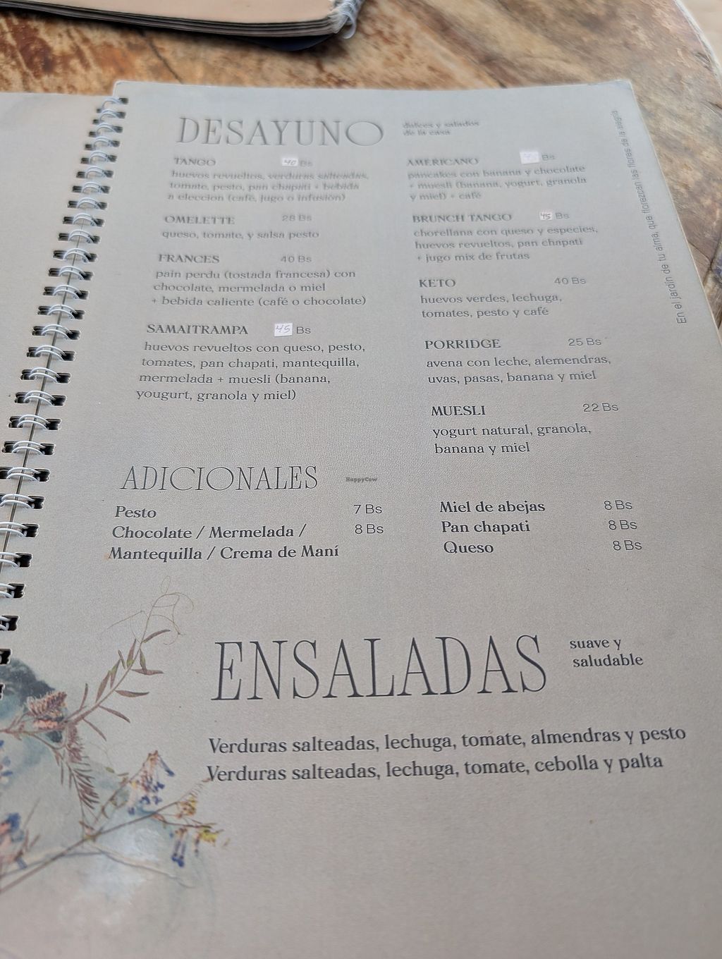 Small part of menu.