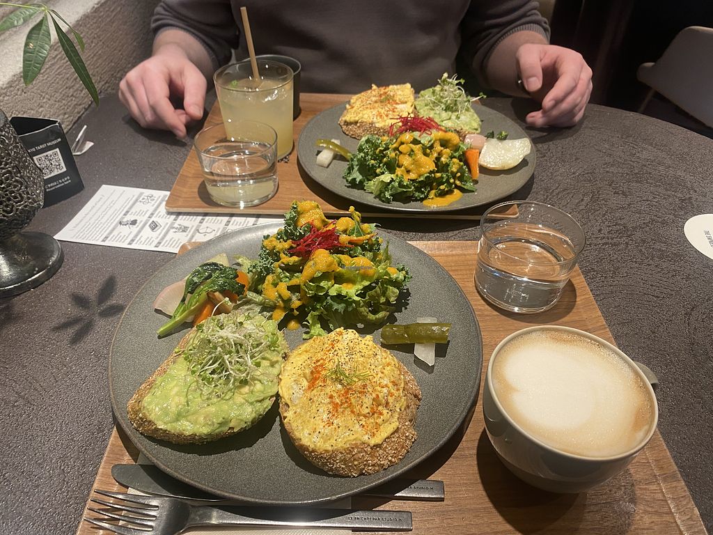 Read moreI ordered the open sandwich, which comes with two pieces of bread. One has avocado on it and one has vegan egg on it. The latter tastes so much like chicken eggs, that it reminded me of the days when I ate them. And it wasn't a pleasant memory. This is not a taste I ever missed, so I ate only half the egg sandwich. The avocado bread was much tastier in my opinion. The side salad had a lot of dressing, so the taste of the original ingredients got lost.