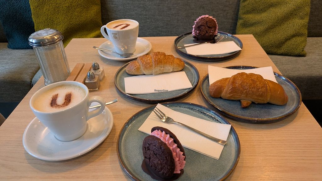 Es gibt Hafermilch und einige vegane Teilchen wie Croissants oder Sternentaler (Schokocookies mit Himbeersahne), alle Zutaten sind an der Theke einsehbar. Außerdem gibt es Porridge, Suppen und eine vegane Stulle. Man kann auch einfach nach den veganen Optionen fragen, das Personal kennt sich aus.