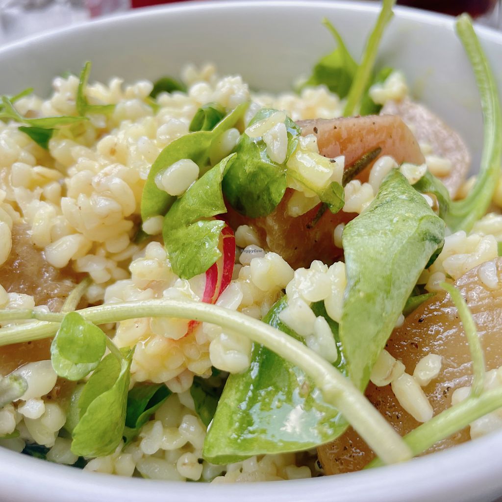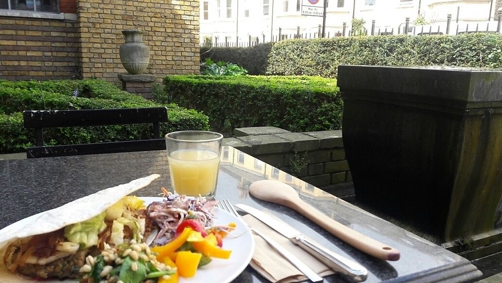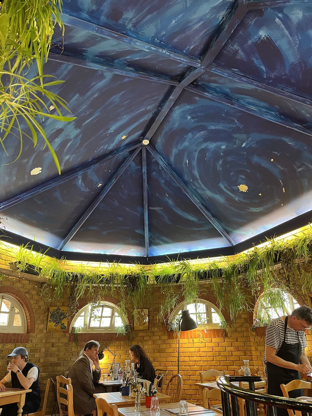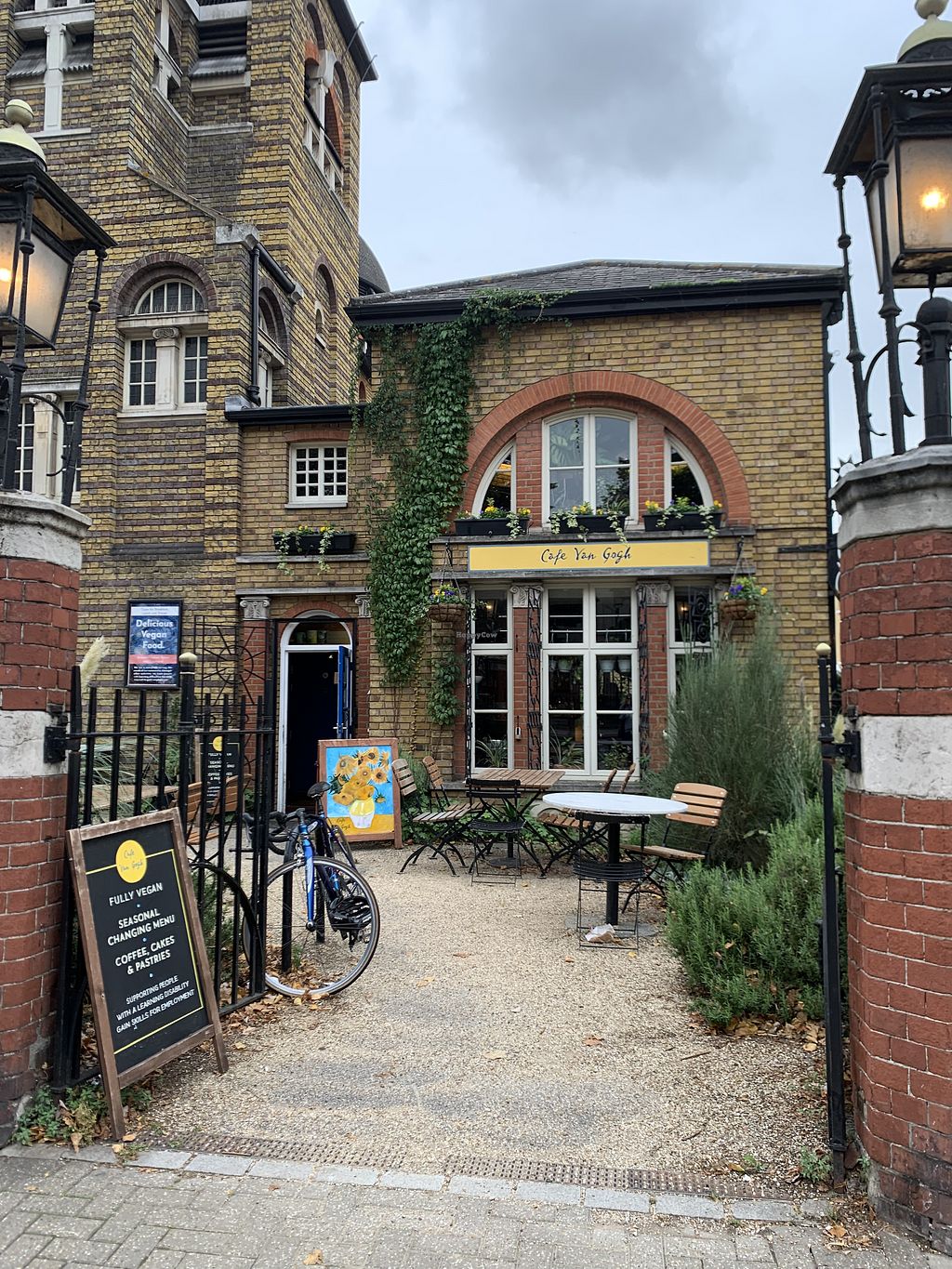 Vegan cafe set hidden in a garden courtyard and offers two floors of seating. Serves breakfast and lunch dishes and Sunday roast. Sample menu items include pie and mash, burger with cheez, oreo sundae, seitan ribs, mushroom pasta ragout, cookie and toffee pudding. Beverages include vegan wines, juice, ginger lemonade, and coffee. Est. 2015 and became all-vegan in 2017. Follow the reservations tab on the website to make a booking. Reported closed June 2024.