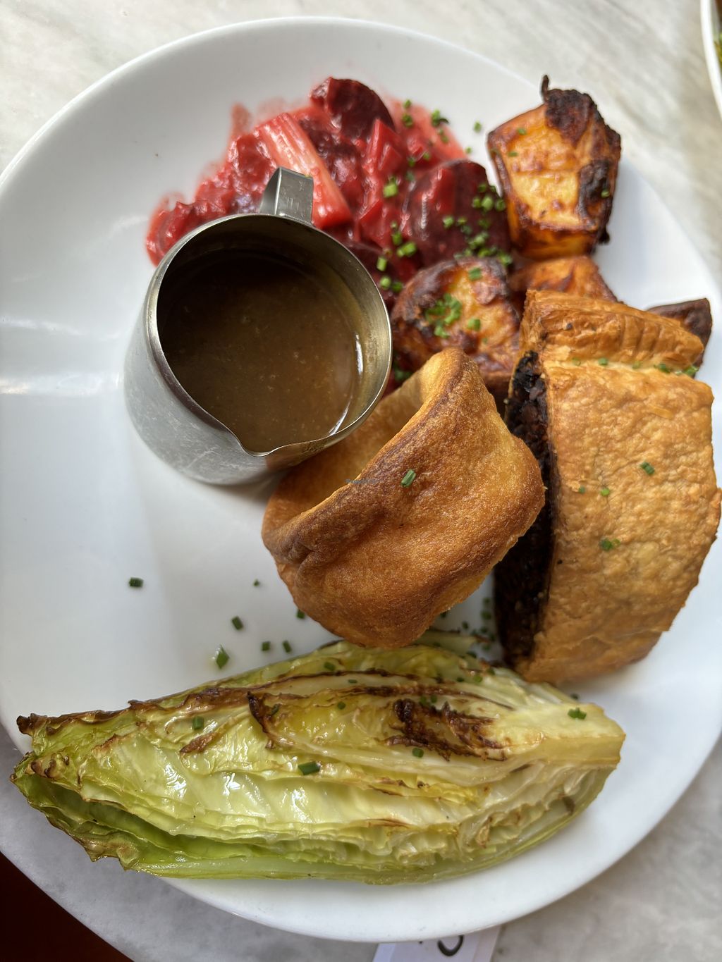 Not usually a huge nut roast fan, but the nut roast Wellington was so tasty. The Yorkshire puddings were the best vegan alternative I’ve had in the 8 years I’ve been vegan!