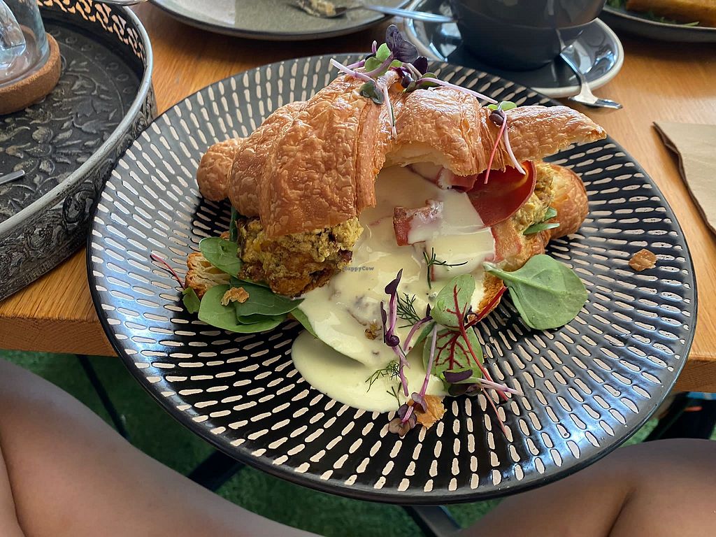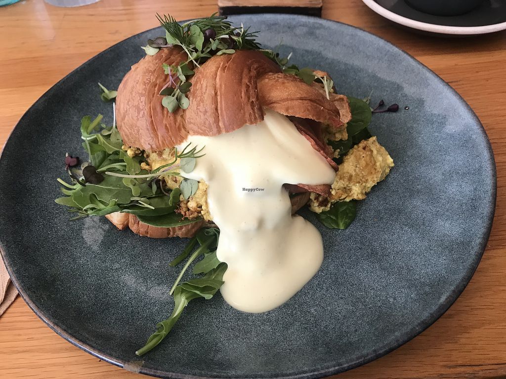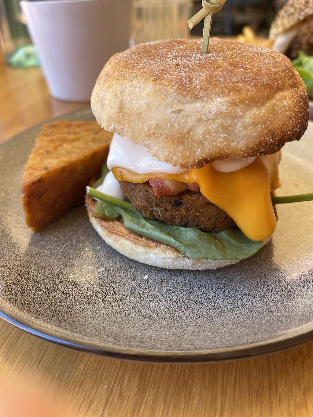 Breakfast muffin with sausage, fakon, vegg (egg) avo and spinach