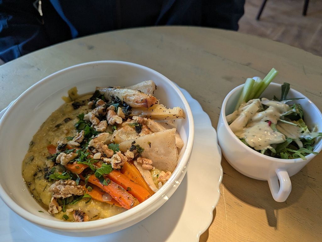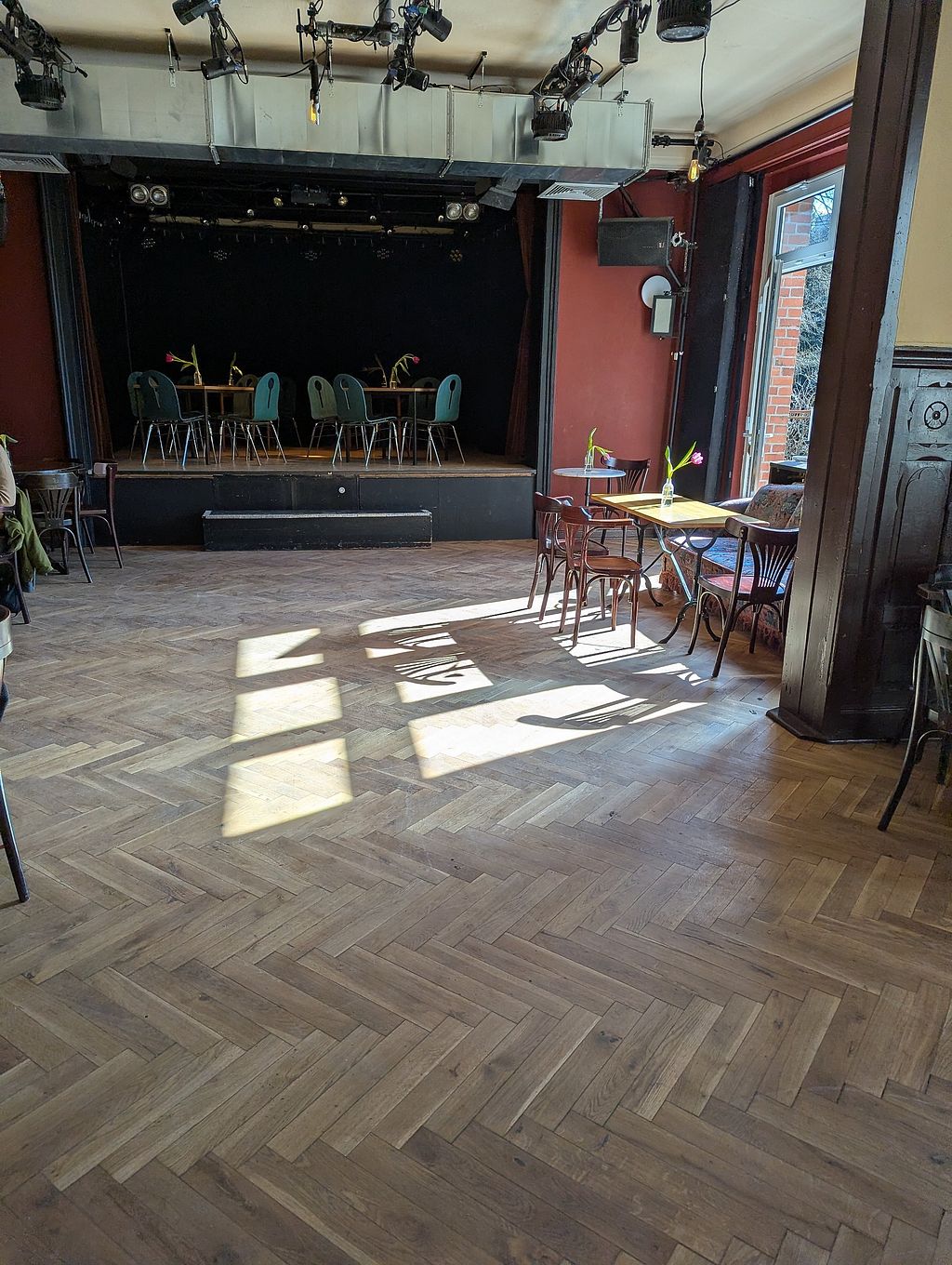 Vegetarian café and live music venue. Weekly changing lunch menu with labeled vegan choices. If events take place, the café is also open in the evenings - see website or social media for details. Open Mon-Fri 11:00-14:00. Closed Sat & Sun. Open late on evenings if events take place.