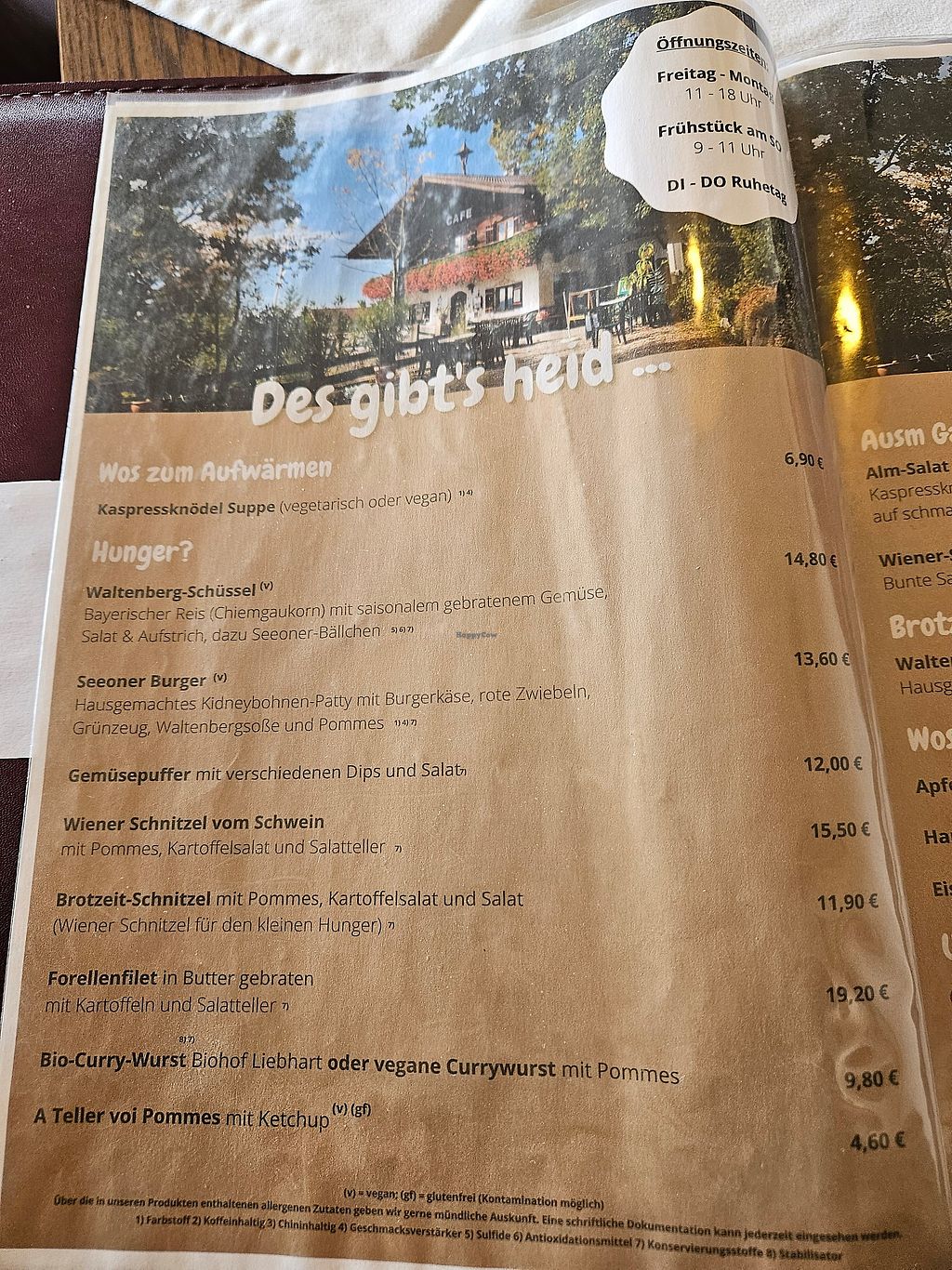 Serves meat, vegan options available. Café located near Lake Seeon, with views of the Bavarian Alps. Offers a selection of vegan dishes including bowl with kidney bean balls, salad, grilled vegetables and spreads; burger with kidney bean pattie; vegan curry sausage, and more. Also offers vegan ice cream, cakes and tarts. Has plant milk. Open Mon 11:00-18:00, Fri-Sat 11:00-18:00, Sun 09:00-18:00. Closed Tue-Thu.