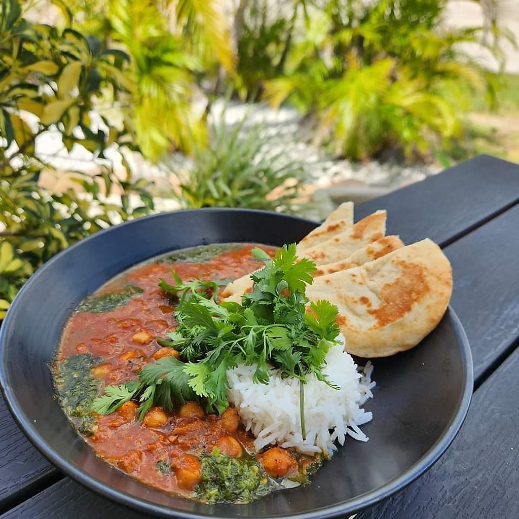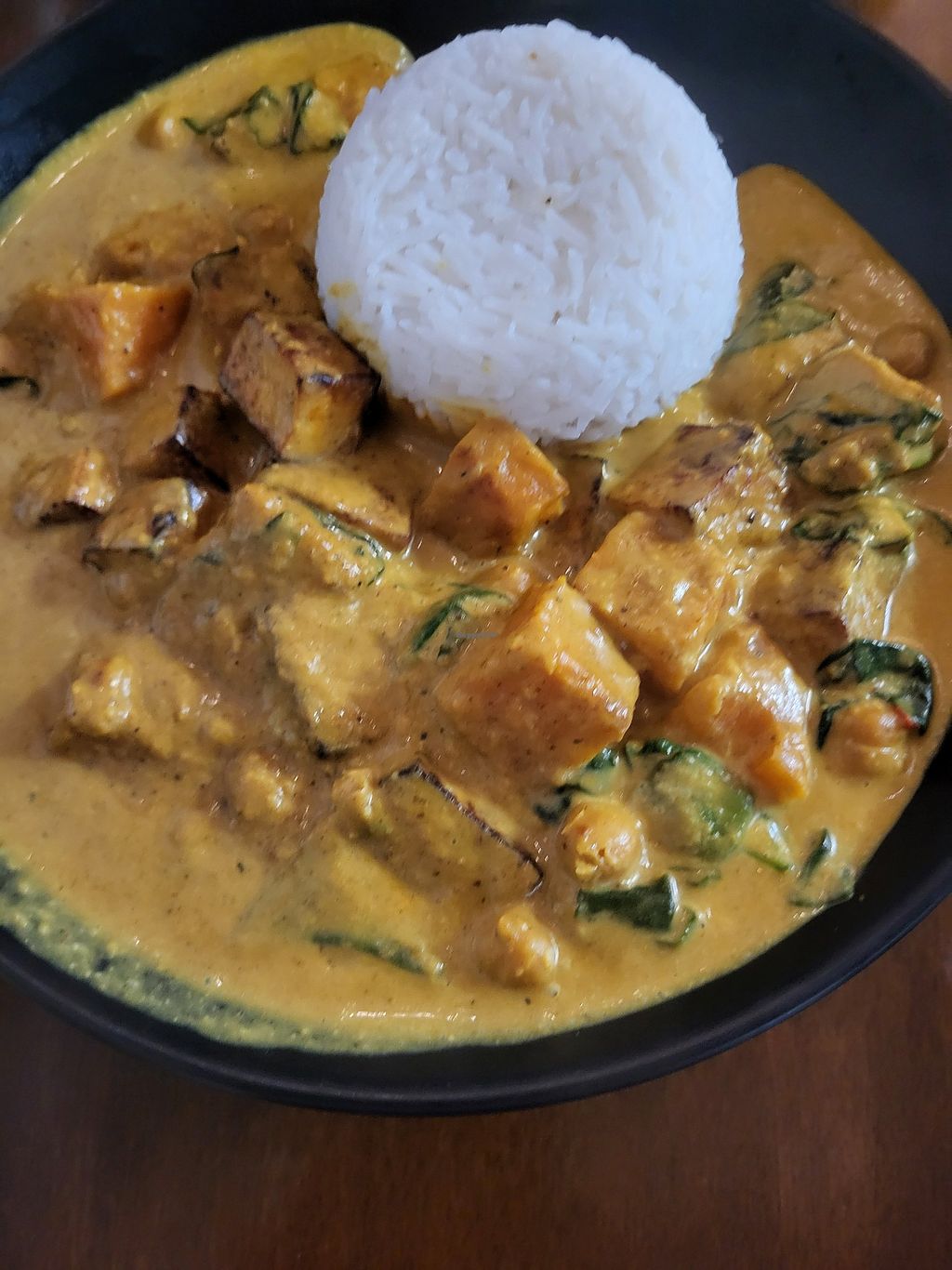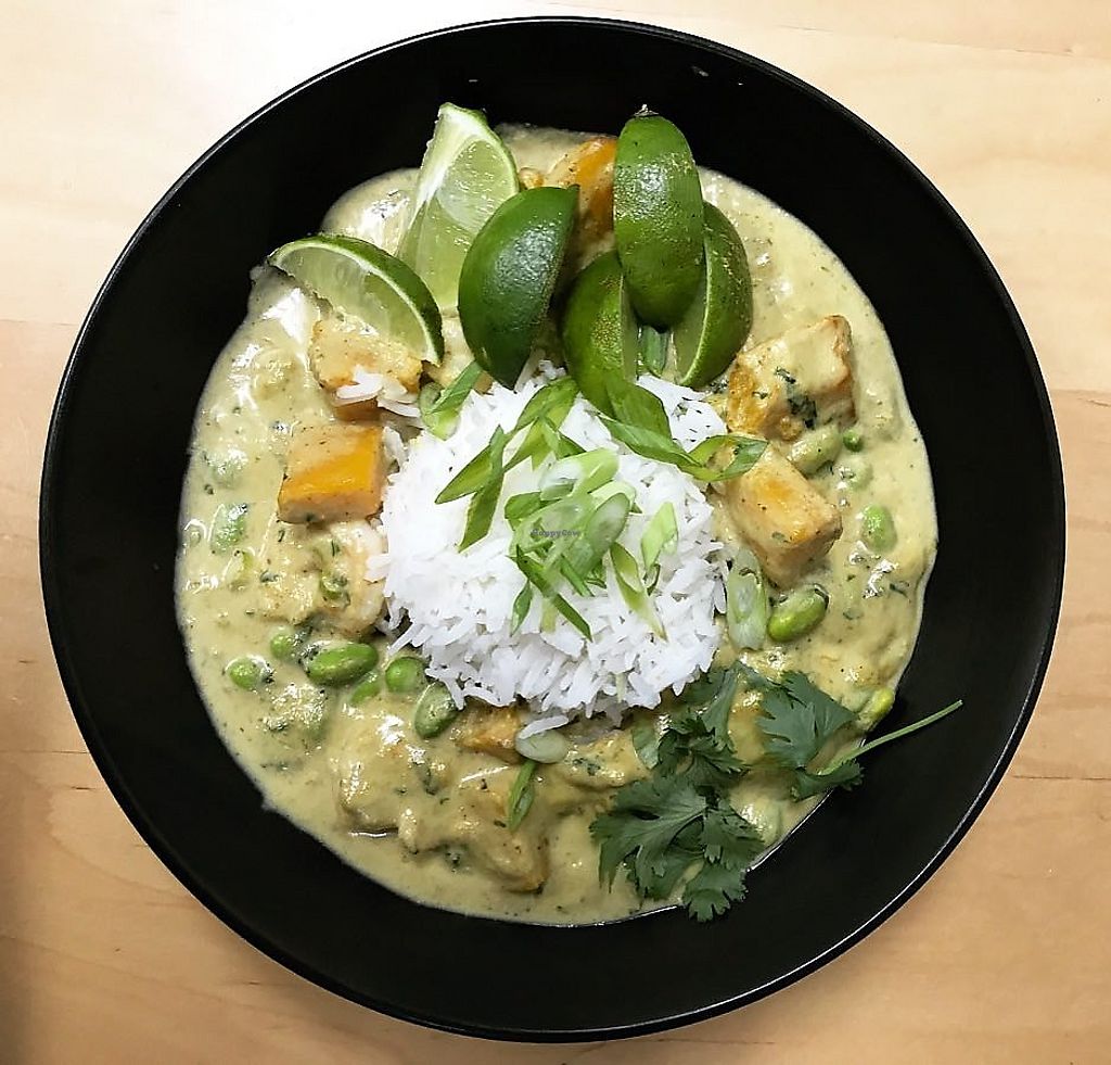 Variety of scratch-made curries: Thai Green, Korma, Chana Masala-chef …