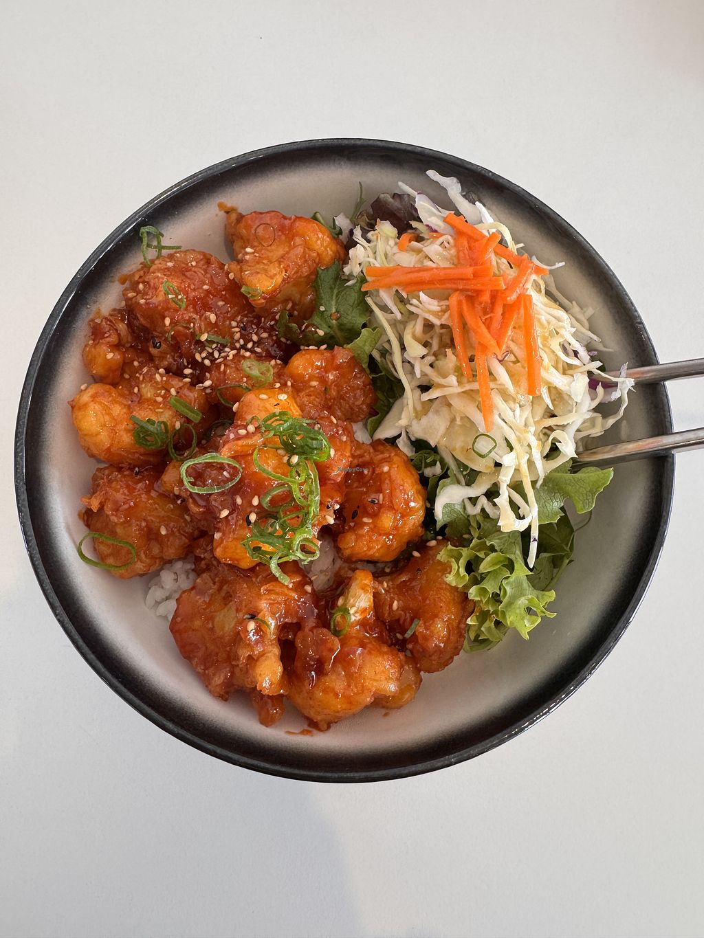 Delicious fresh Korean food, plenty of vegan options. The front of shop doesn’t look amazing, but don’t let this fool you! Super friendly staff. I had the KFC rice bowl (Korean fried Cauliflower) that also comes with salad. I’d definitely get again. Just a shame I live so far away from here!! So many things to try!