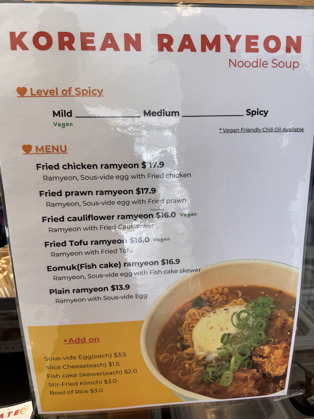 Serves meat, vegan options available. Korean style cafe with a dedicated vegan menu. Vegan selection includes Korean fried cauliflower, tofu kimbap, taco toastie, tofu poke bowls, tteokbokki and dumplings. Open Mon-Fri 6:30am-3:30pm, Thu-Fri 6:30am-3:30pm, Fri 5:00pm-7:30pm, 5:00pm-7:30pm, Sat 8:00am-2:30pm, 8:00am-2:30pm. Closed Sun.