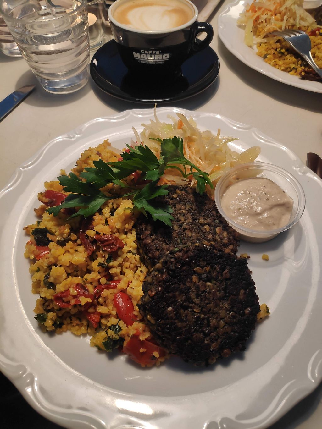 Had soup of the day, chickpea burgers, chocolate cake with chocolate ice cream and chocolate ball, all vegan. Lunch came with salad buffet (all vegan except butter) and coffee. Chocolate cake was absolutely amazing.