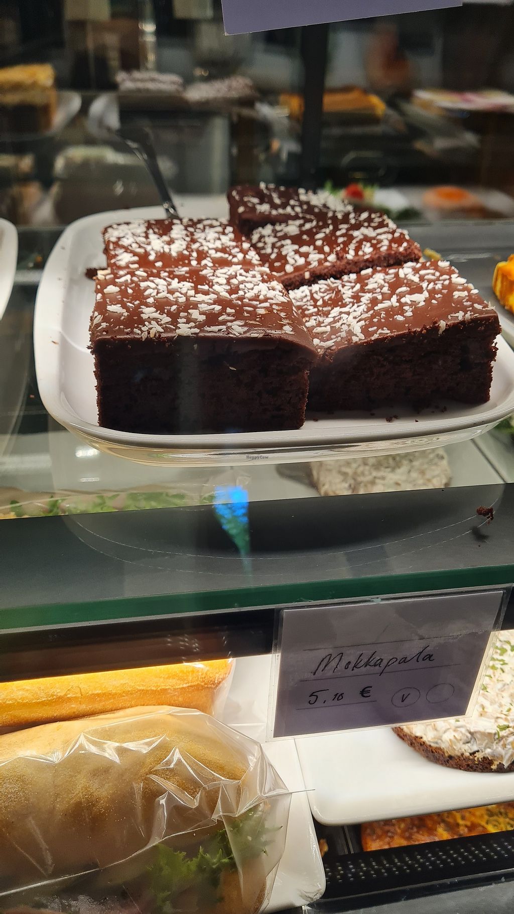 This place has a lot of different rooms with tables which makes it very cosy. They had plant-based milk options, but only two types of vegan pastries: a mocca cake and a biscotti. They also had great places to sit outside, by the river.