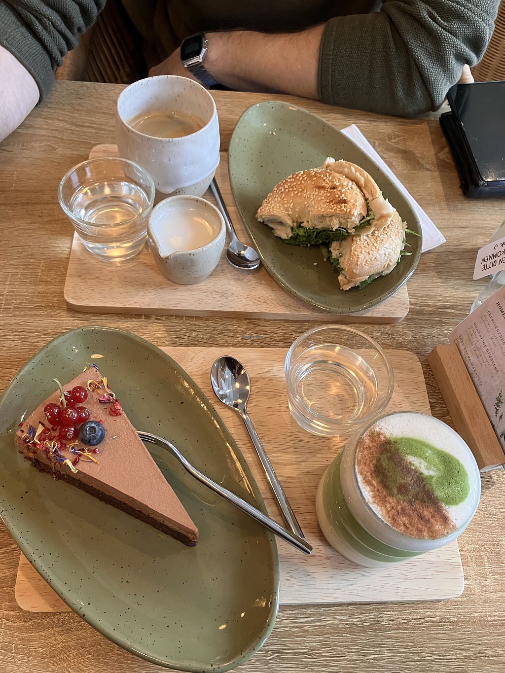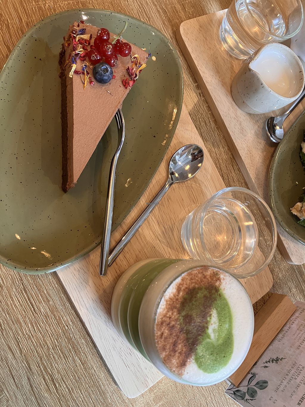 Lotustorte, Maracujakäsekuchen, Latte Machiatto mit Hafermilch und Mar…