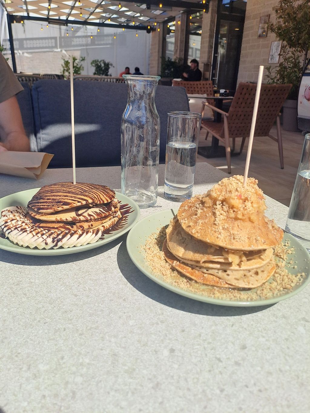 Pros: Vegan pancakes , Outdoor terrace , Service