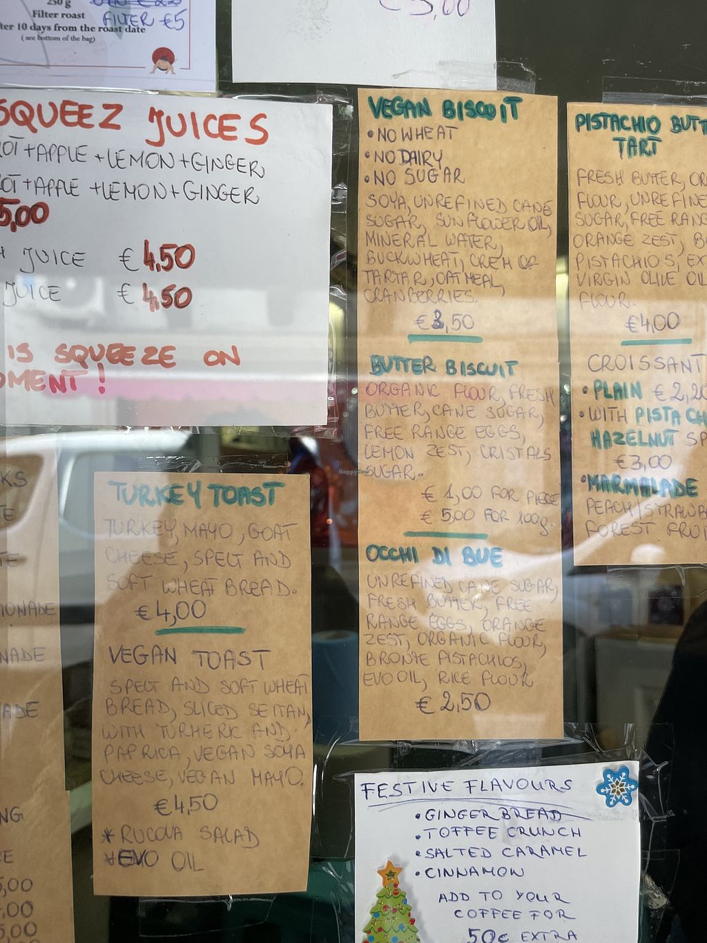 We went twice. I recommend the Mister C juice, which is served in a beautiful glass. I got the avocado toast (Vegan Mashavo) the first time, but when we went a few days later, they were out of ripe avocados (those fickle things!) so I got the Tramezzino vegan. They made it with zucchini that had a really good texture similar to seitan. For dessert we had some wine biscuits. The portions were perfect and the servers were really friendly.